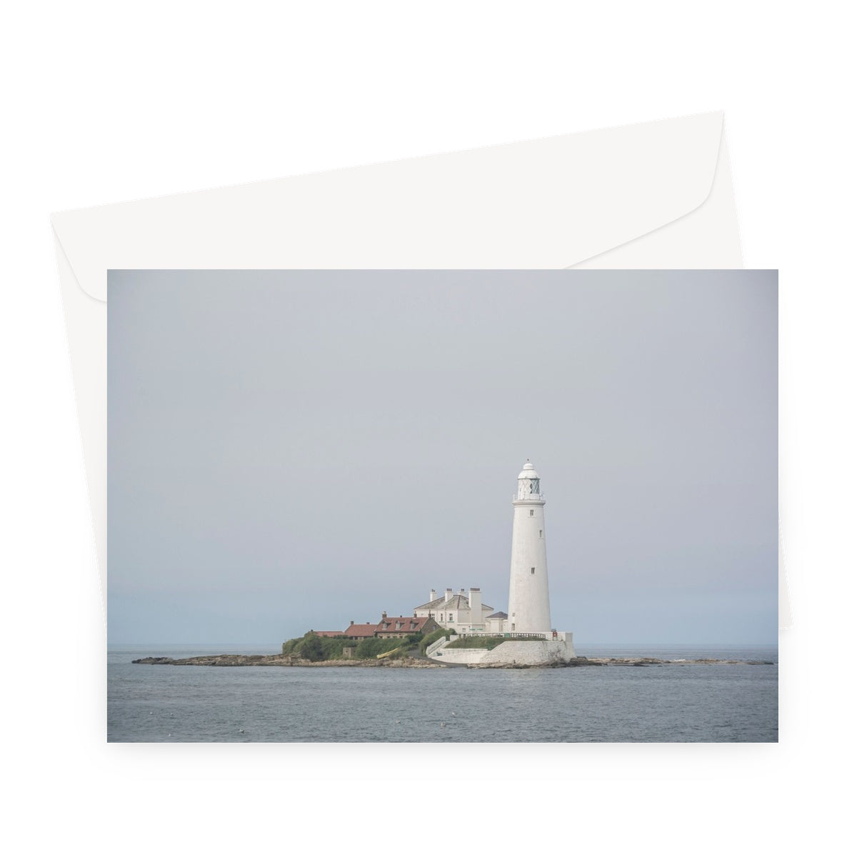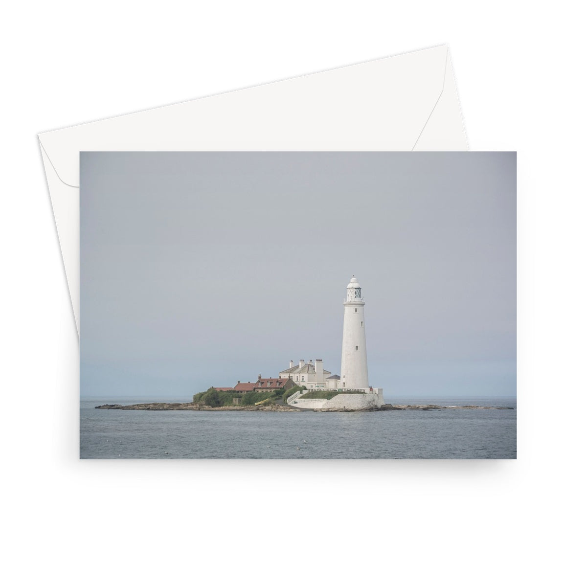 St Mary's Island and lighthouse. Whitley Bay, Tyne and Wear. UK Greeting Card