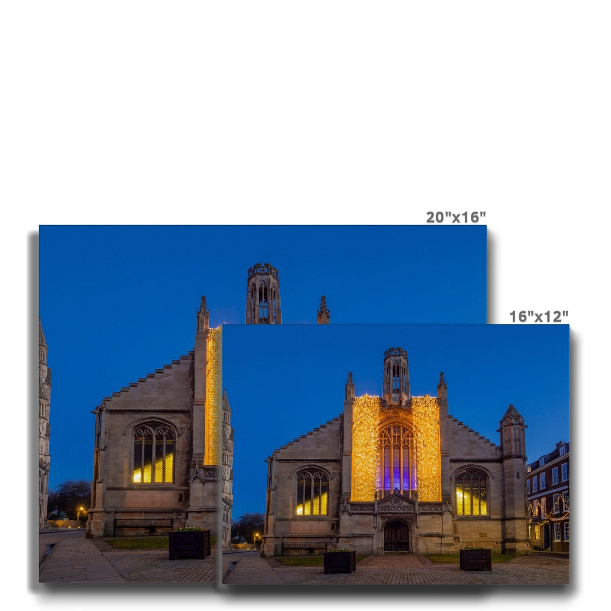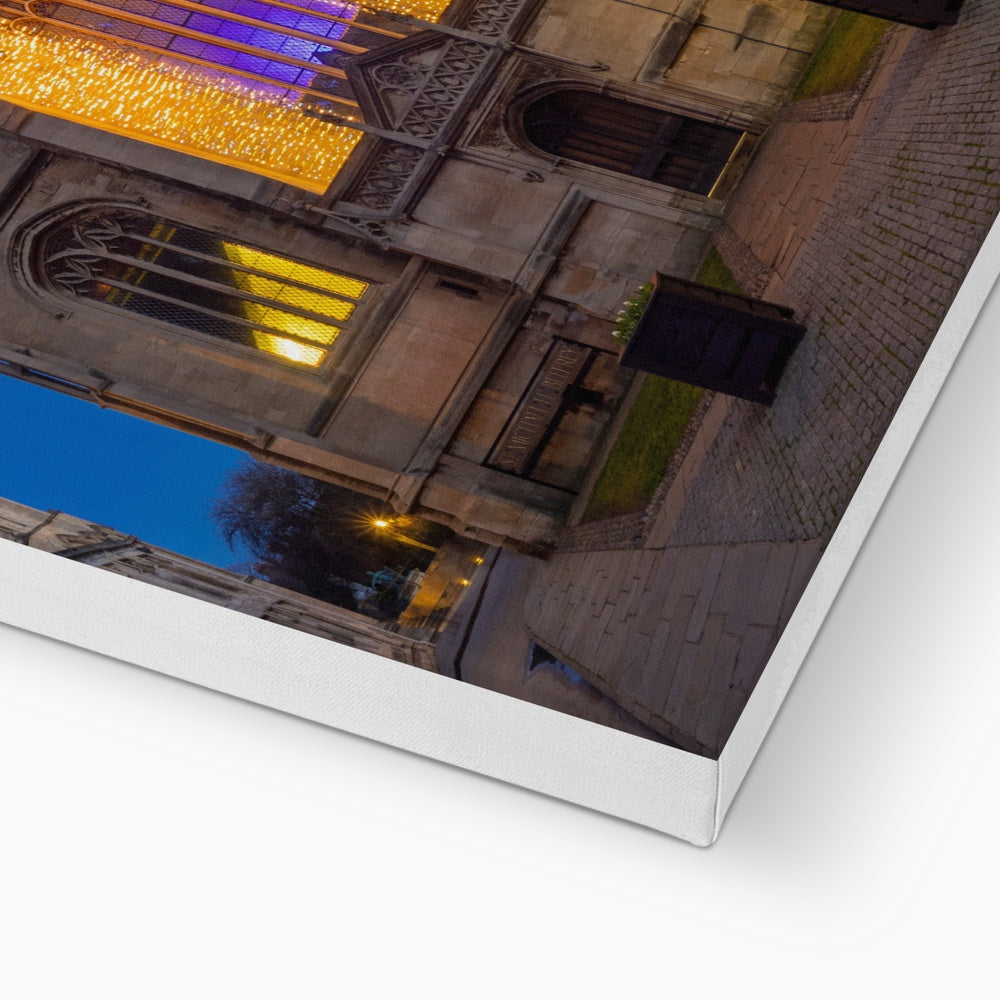 St Michael le Belfrey church with Christmas illuminations at dusk. York. UK Canvas