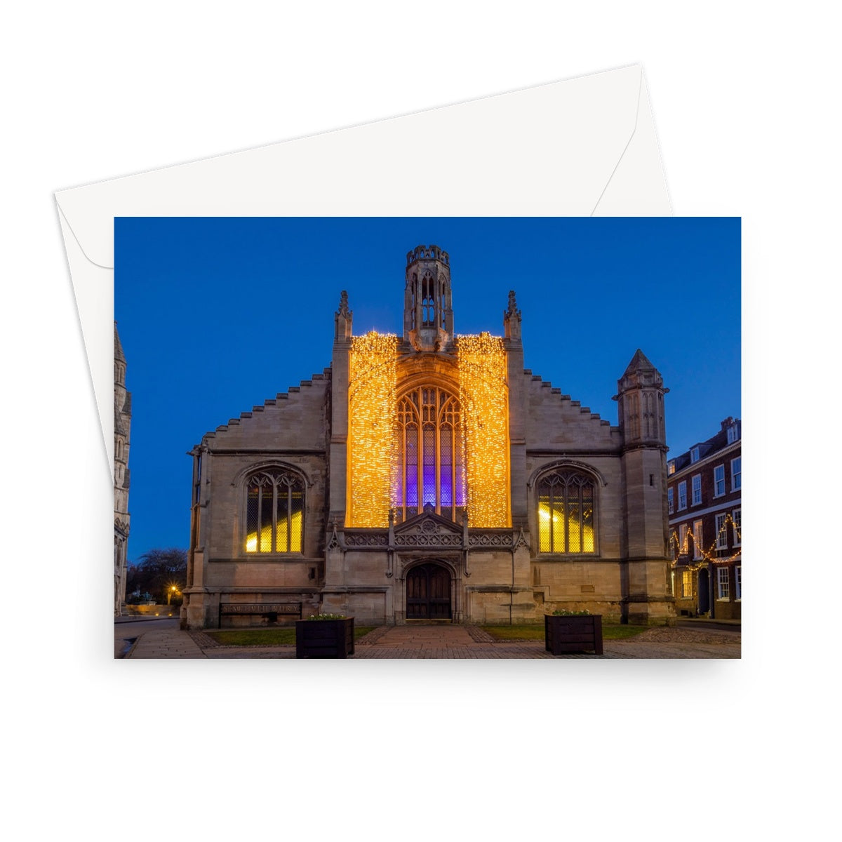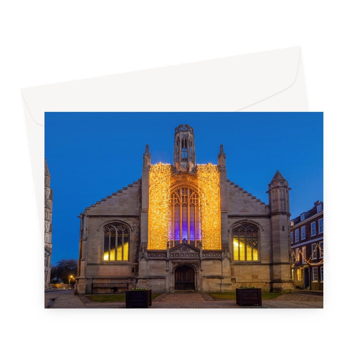 St Michael le Belfrey church with Christmas illuminations at dusk. York. UK Greeting Card