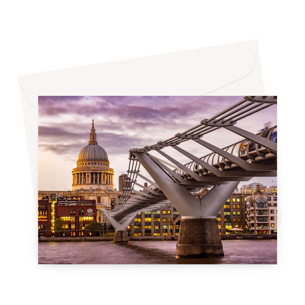 St Paul's Cathedral and Millennium Bridge over the River Thames, London. Greeting Card