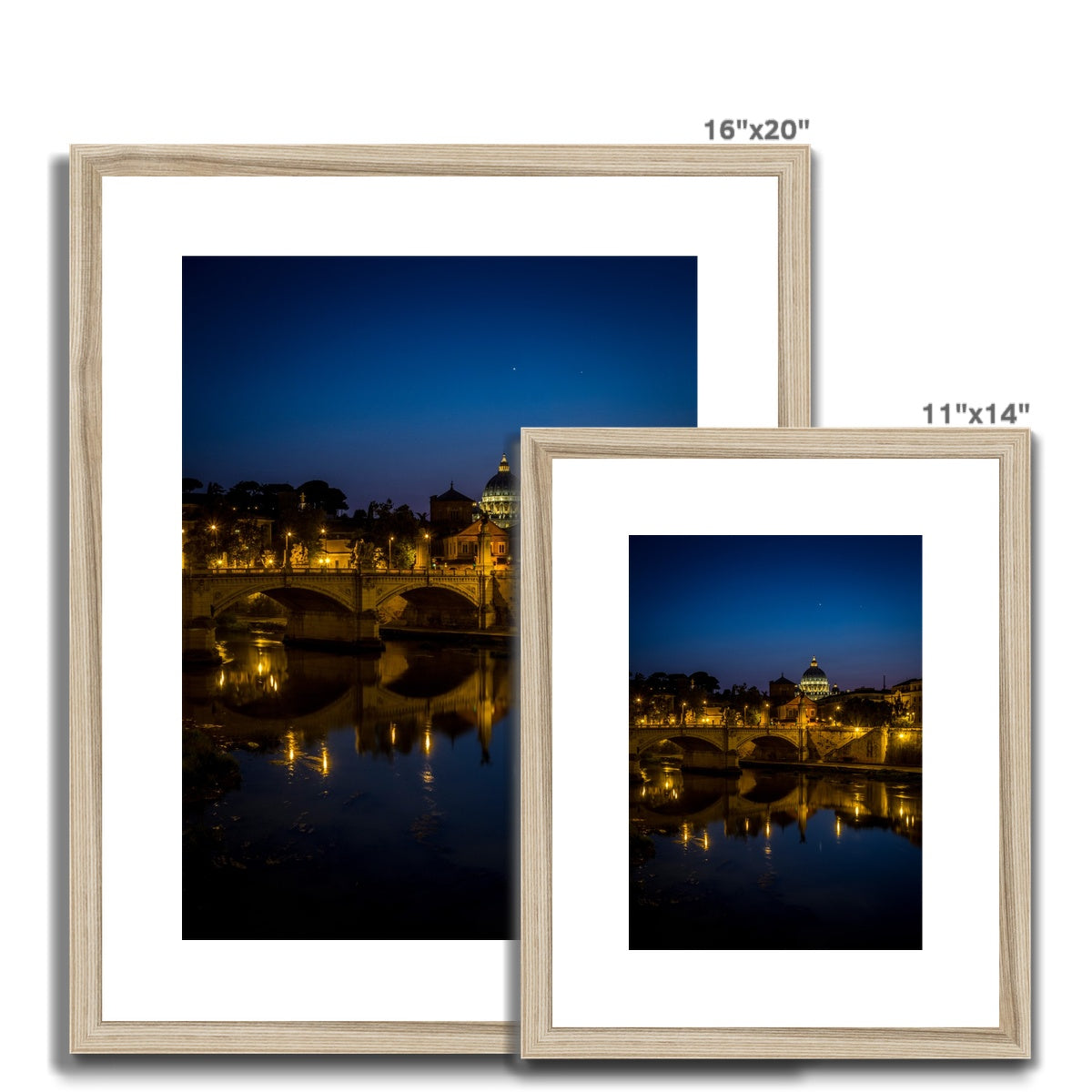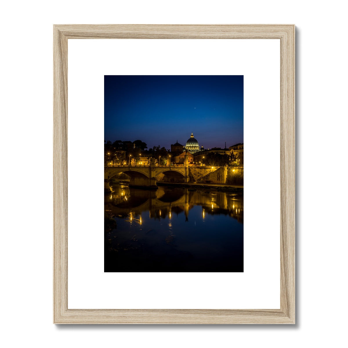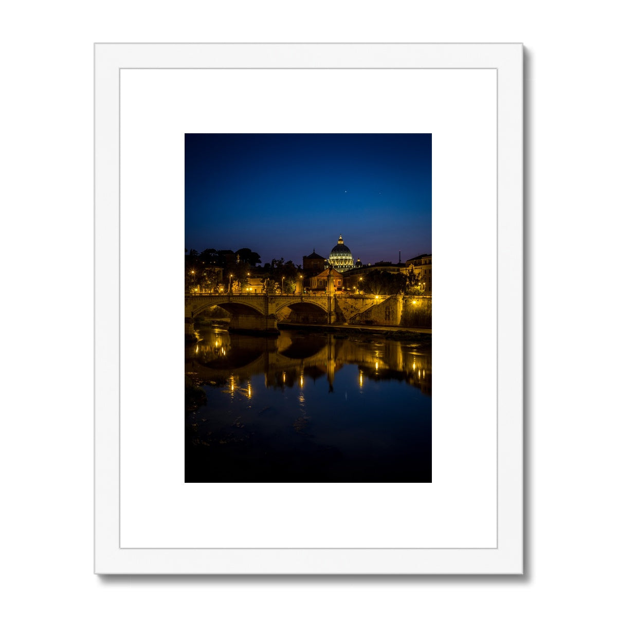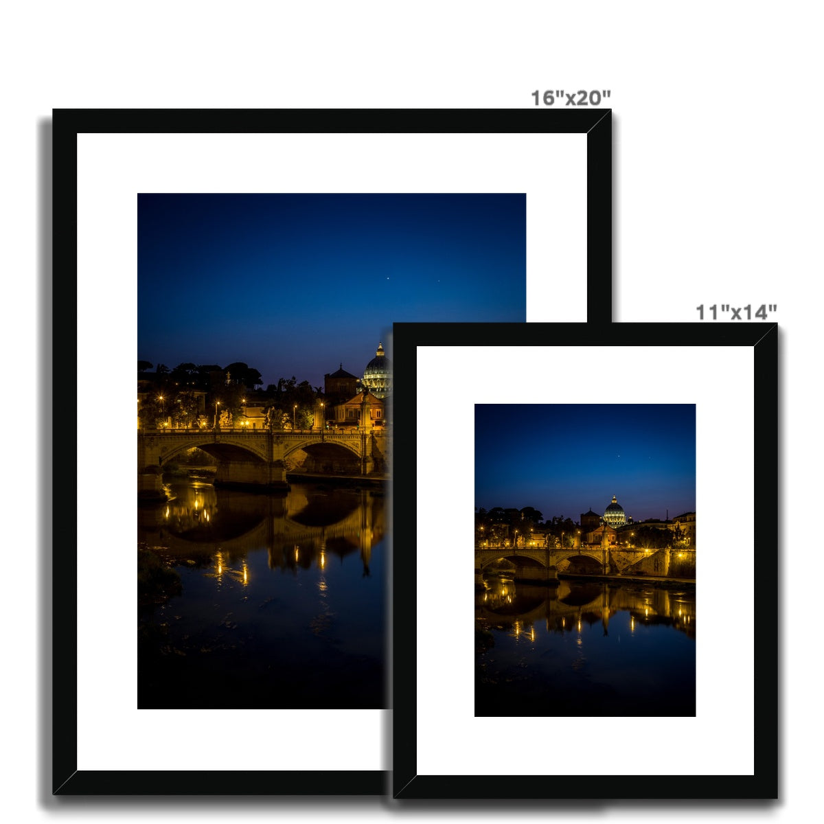 St Peter's Basilica. Ponte Vittorio Emanuele ll Vatican City at night, Rome, Italy. Framed & Mounted Print