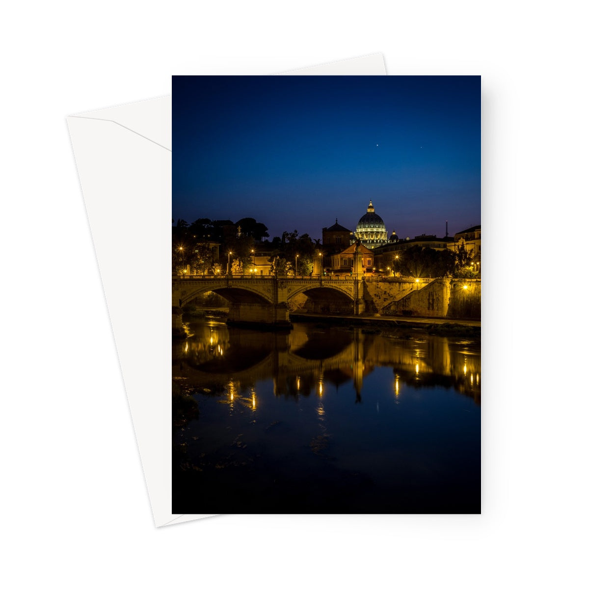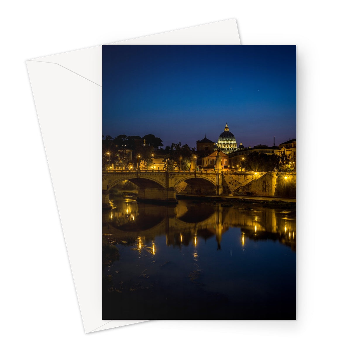 St Peter's Basilica. Ponte Vittorio Emanuele ll Vatican City at night, Rome, Italy. Greeting Card