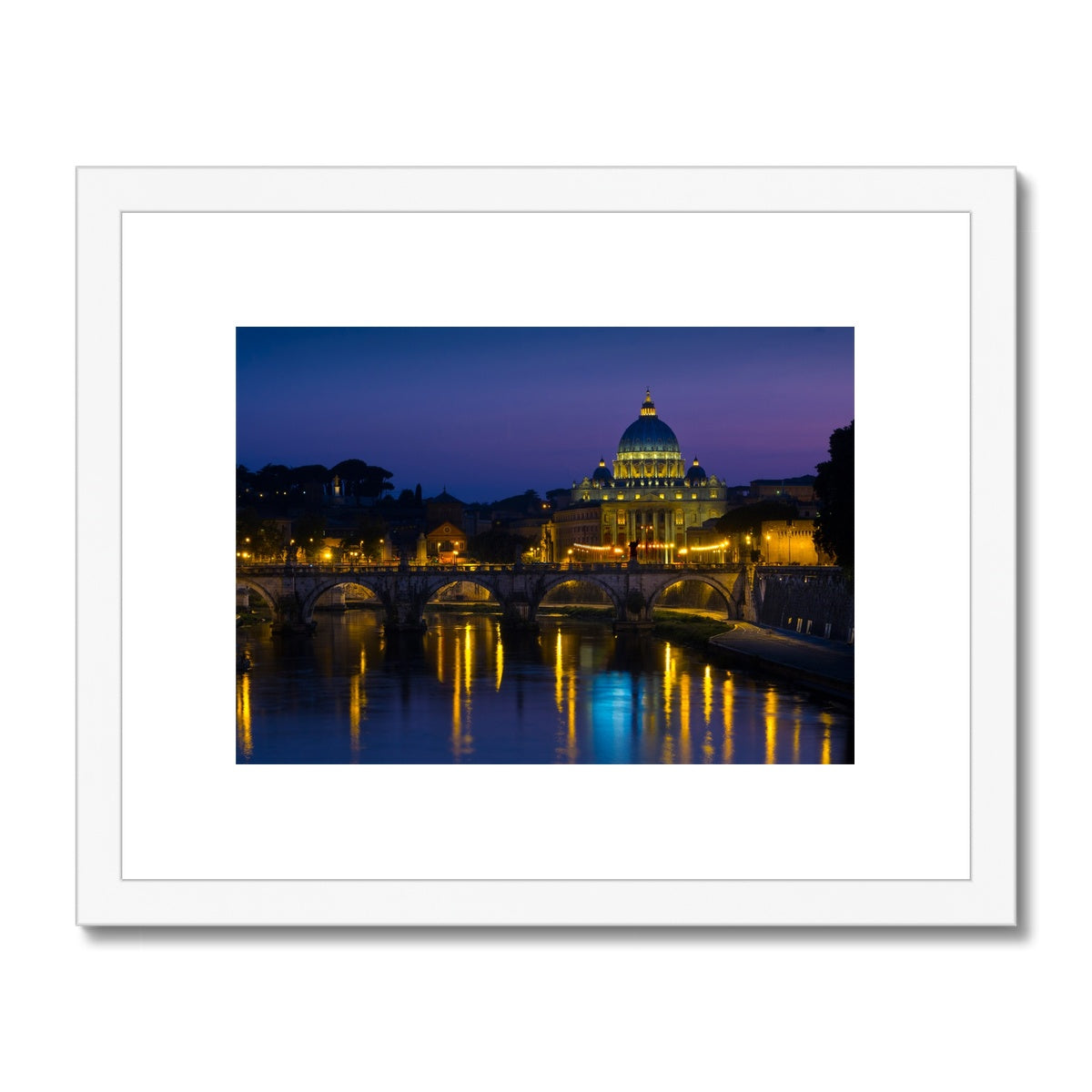 St Peter's Basilica, Vatican City at night, Rome, Italy. Framed & Mounted Print