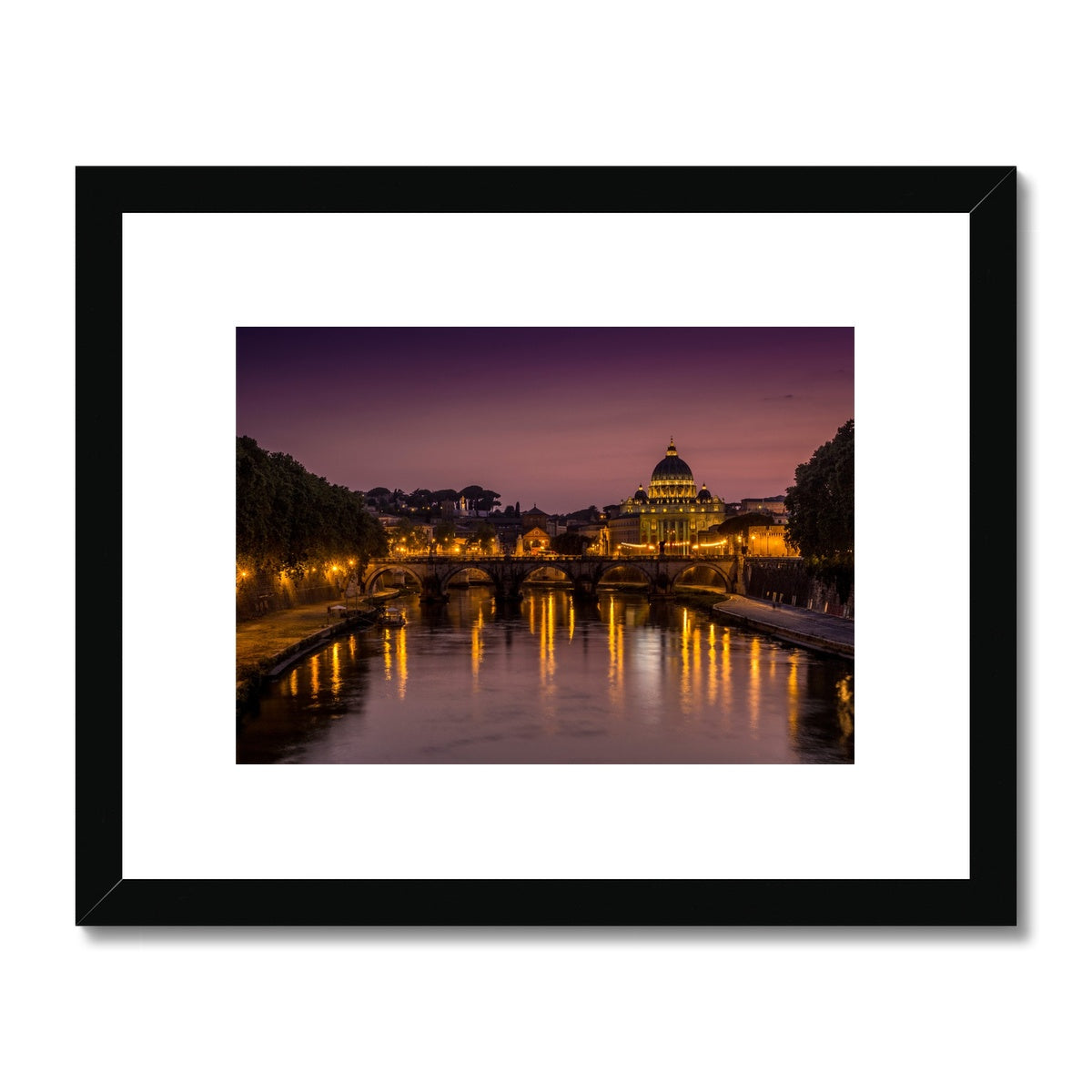 St Peter's Basilica. Vatican City at night. Rome, Italy. Framed & Mounted Print