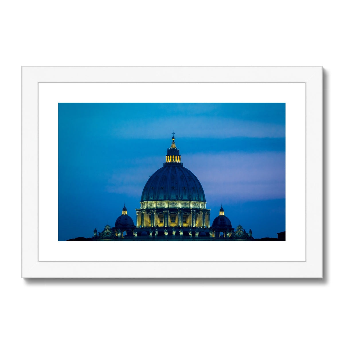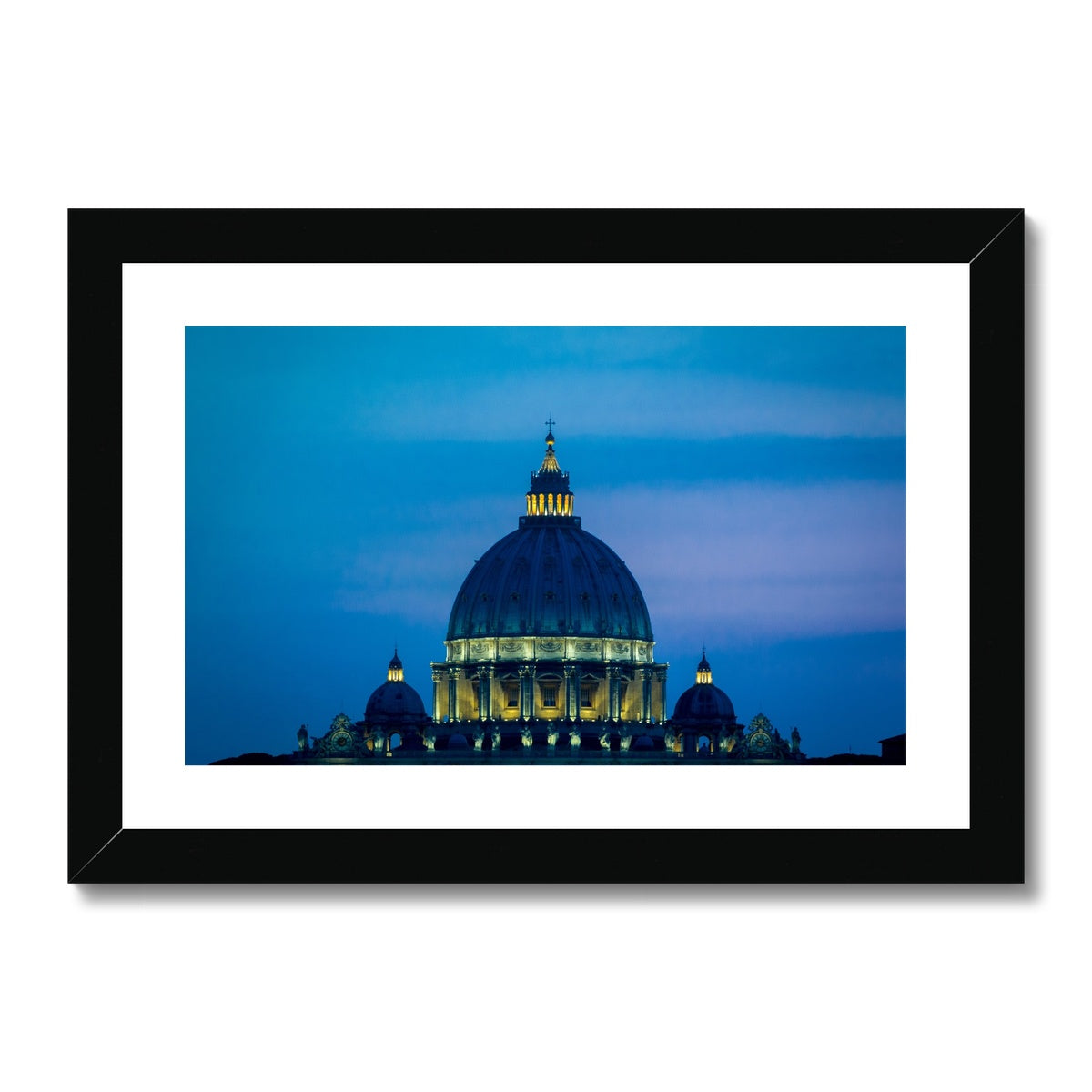 St Peter's Basilica. Vatican City at night, Rome, Italy. Framed & Mounted Print