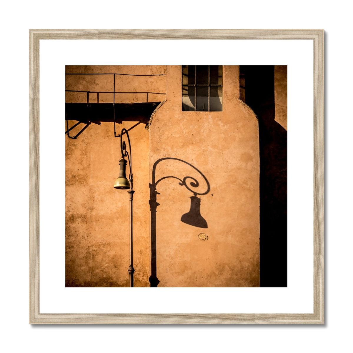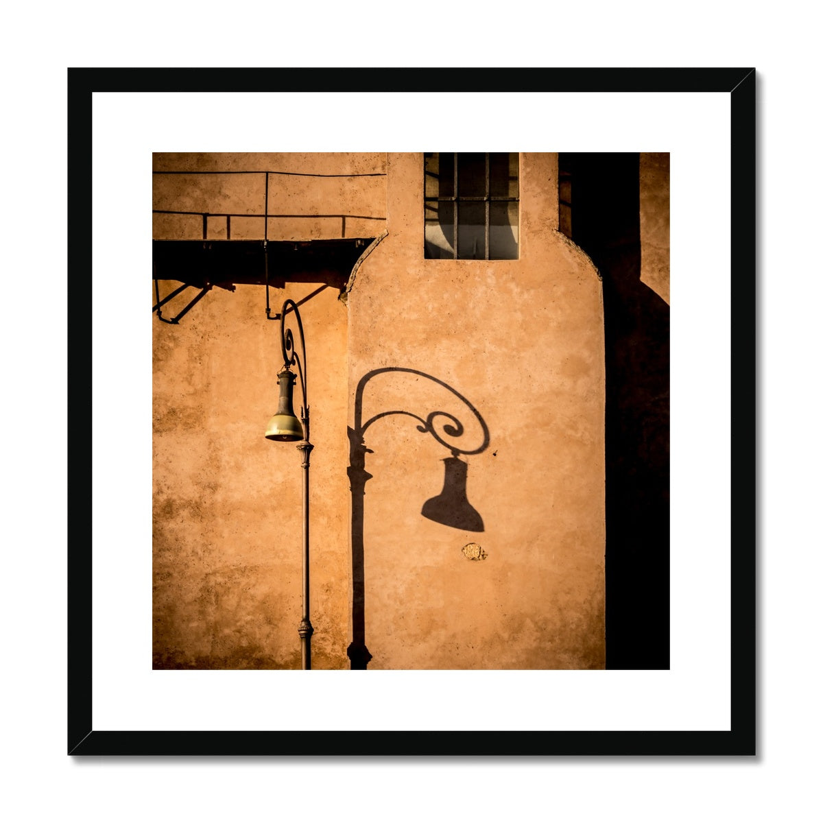 Street lamp and shadow on rendered building wall, Rome, Italy. Framed & Mounted Print