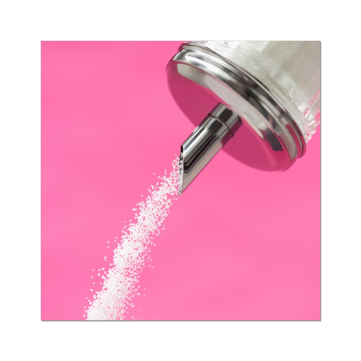 Sugar dispenser pouring against pink background Fine Art Print