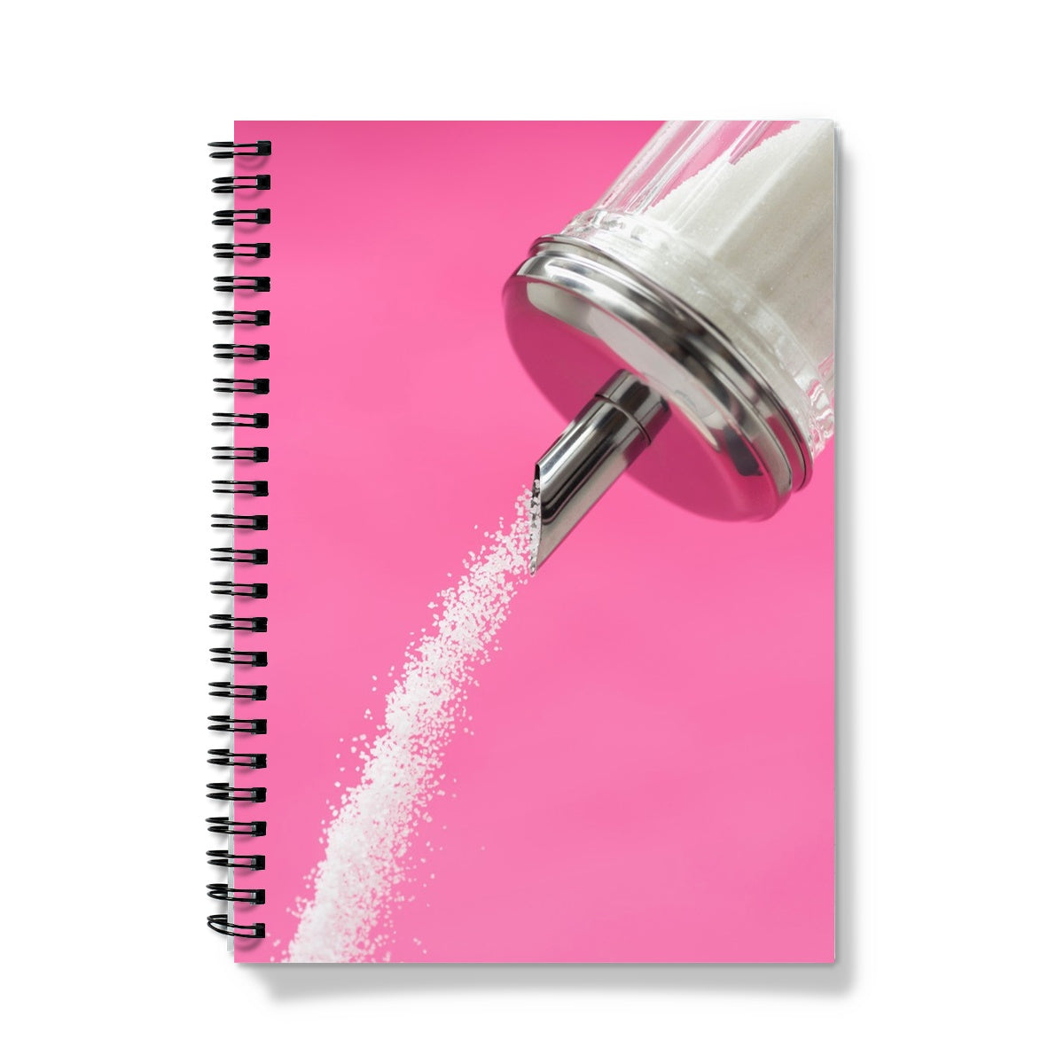Sugar dispenser pouring against pink background Notebook