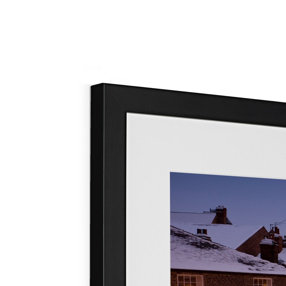 The Kings Arms pub and River Ouse in the snow at dusk, York, UK. Framed & Mounted Print