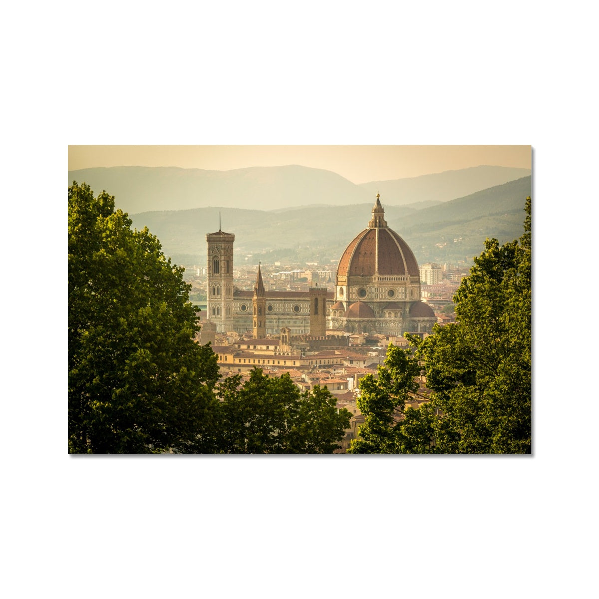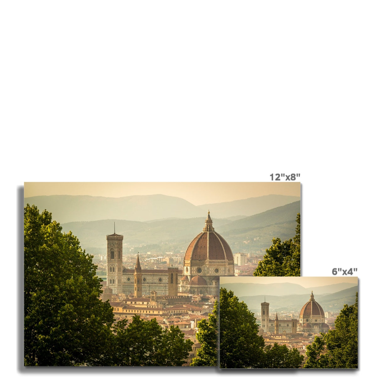 The south façade of Florence Cathedral glimpsed through the trees of San Miniato al Monte. Italy. Fine Art Print