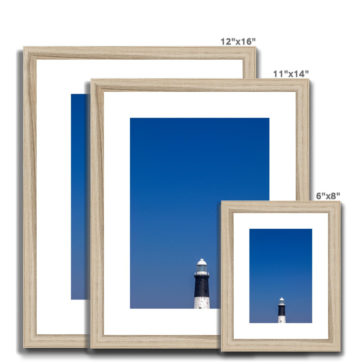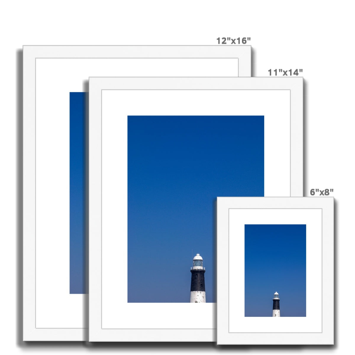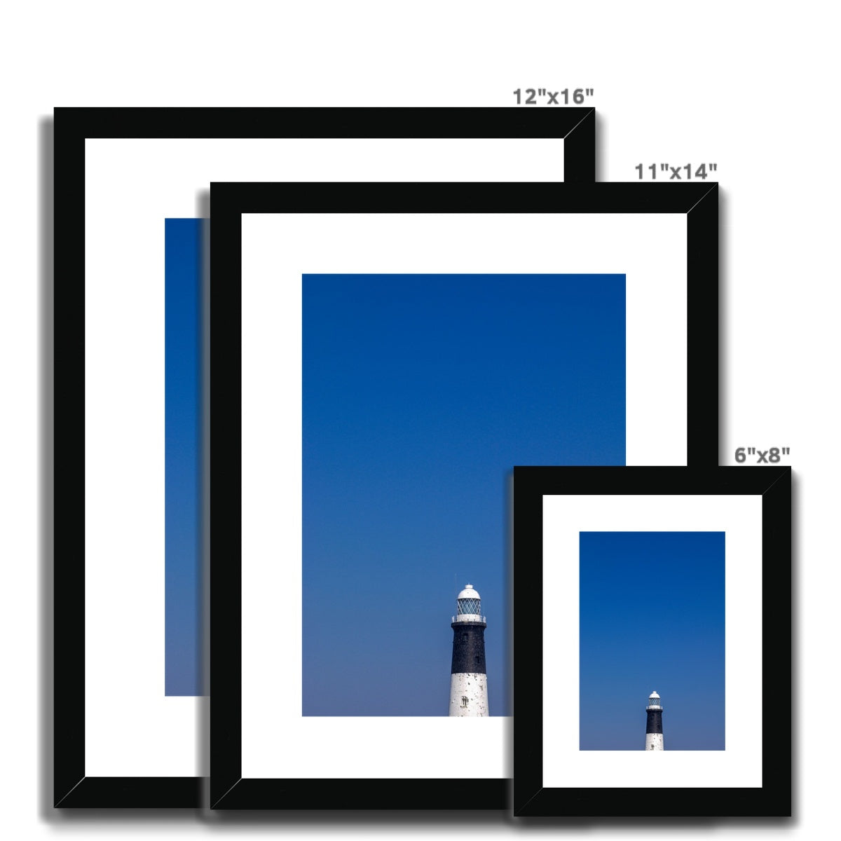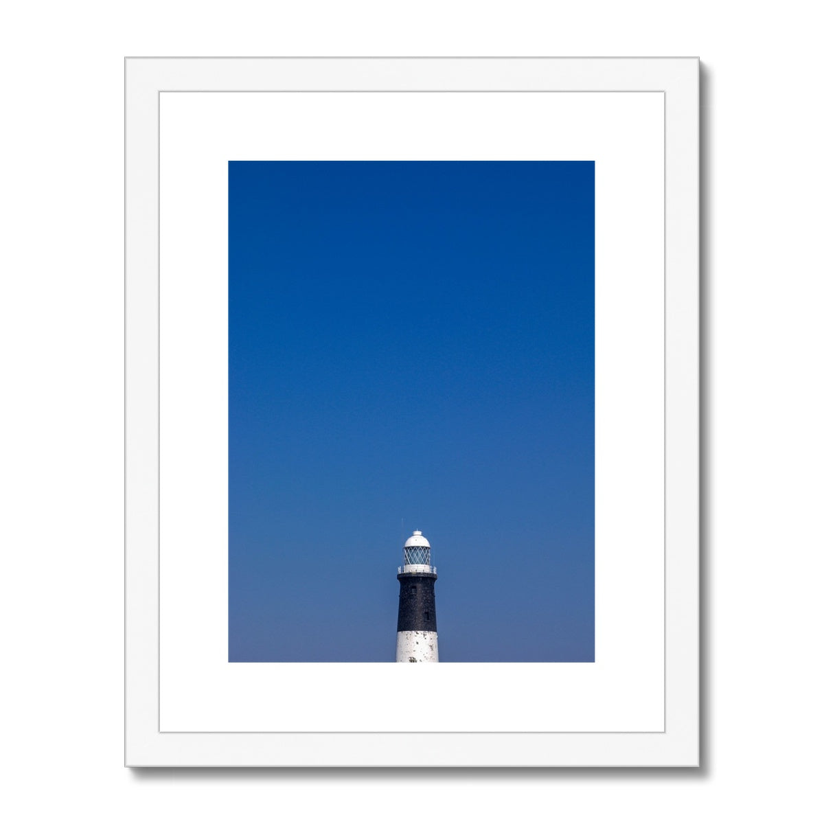 Top of a lighthouse against blue sky Framed & Mounted Print