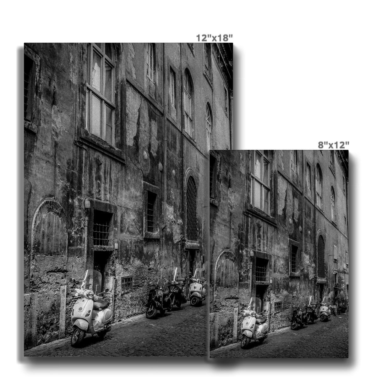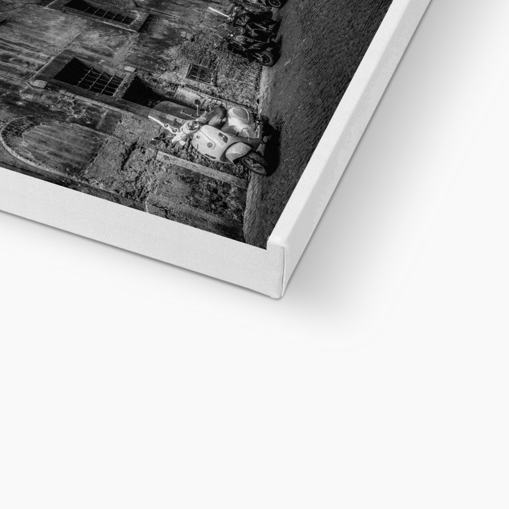 Typical street with parked scooters in the centre of Rome. Italy. Canvas