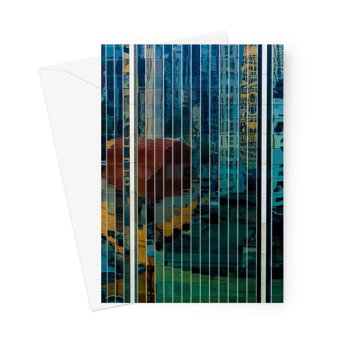 Urban reflections dance across a skyscraper's glazed facade Greeting Card