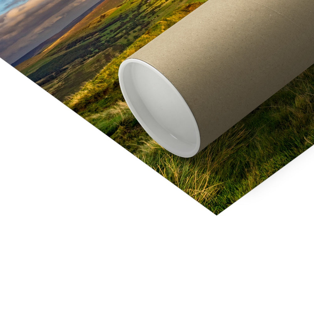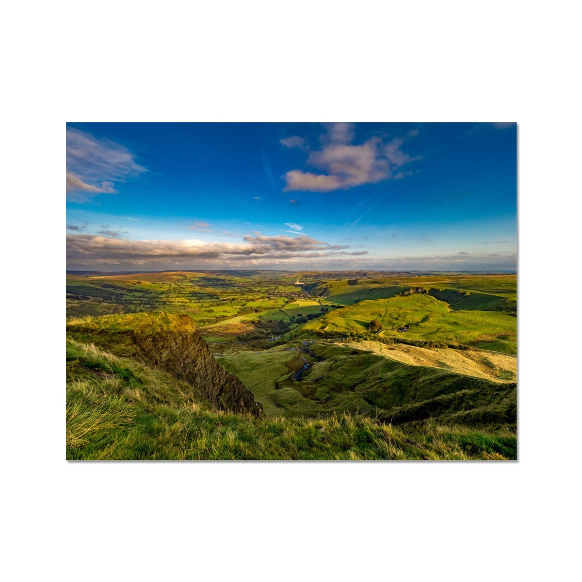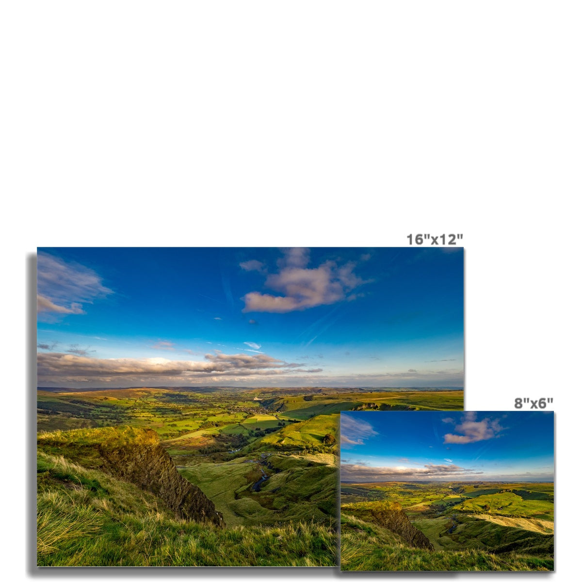 View from summit of Mam Tor Castleton and Hope Valley, Peak District, UK. Fine Art Print