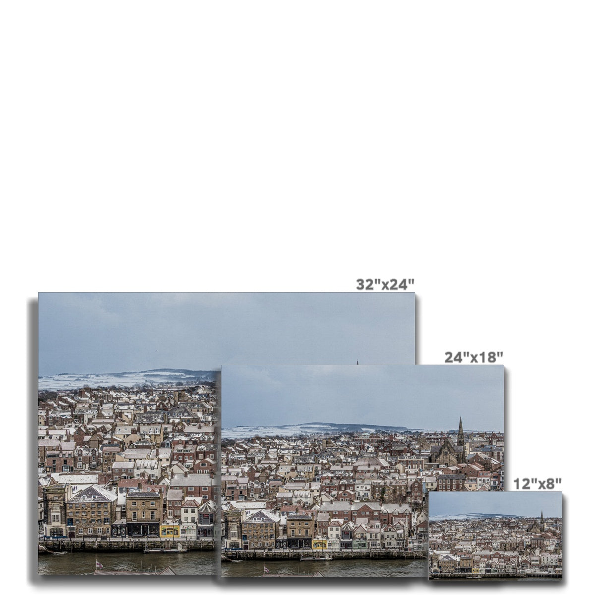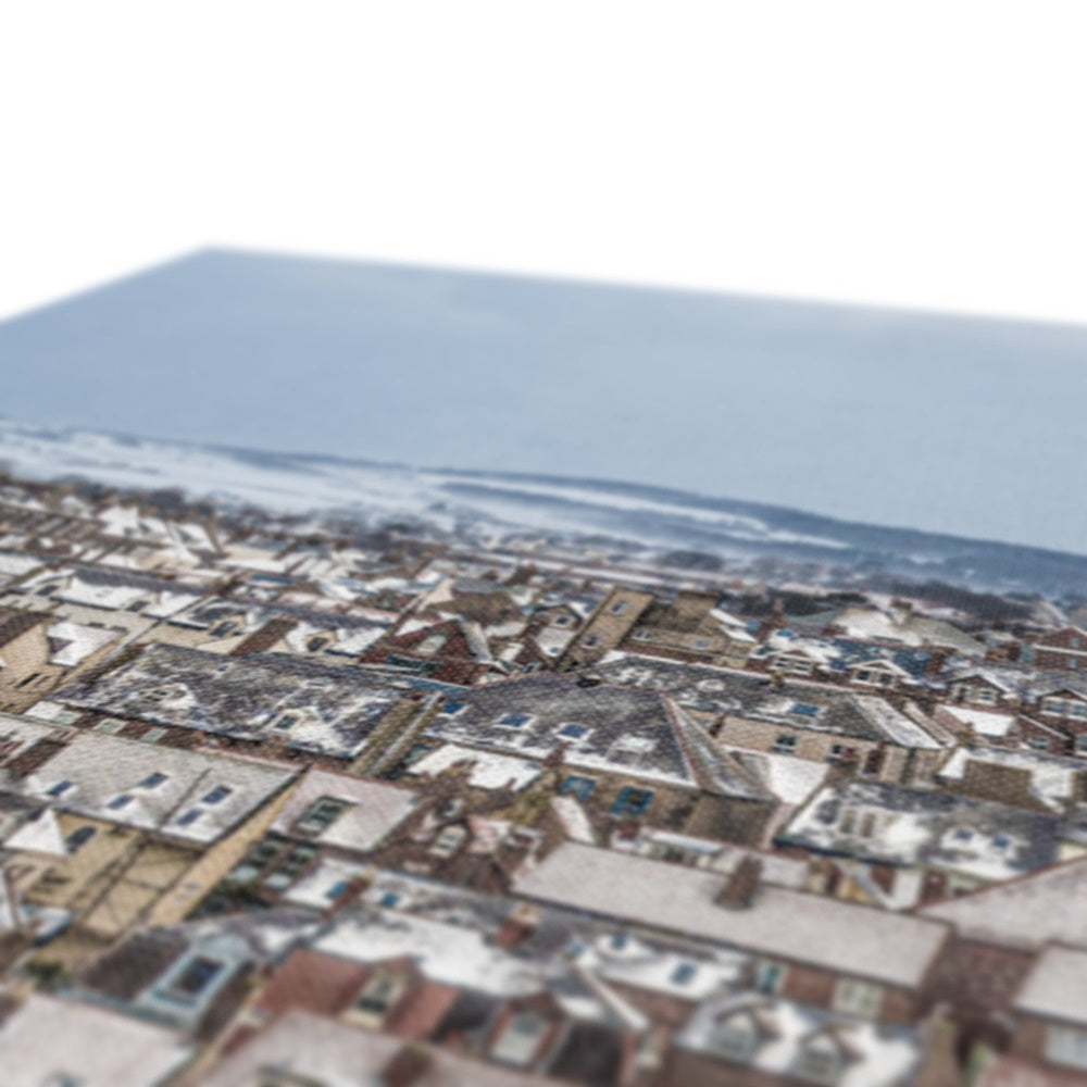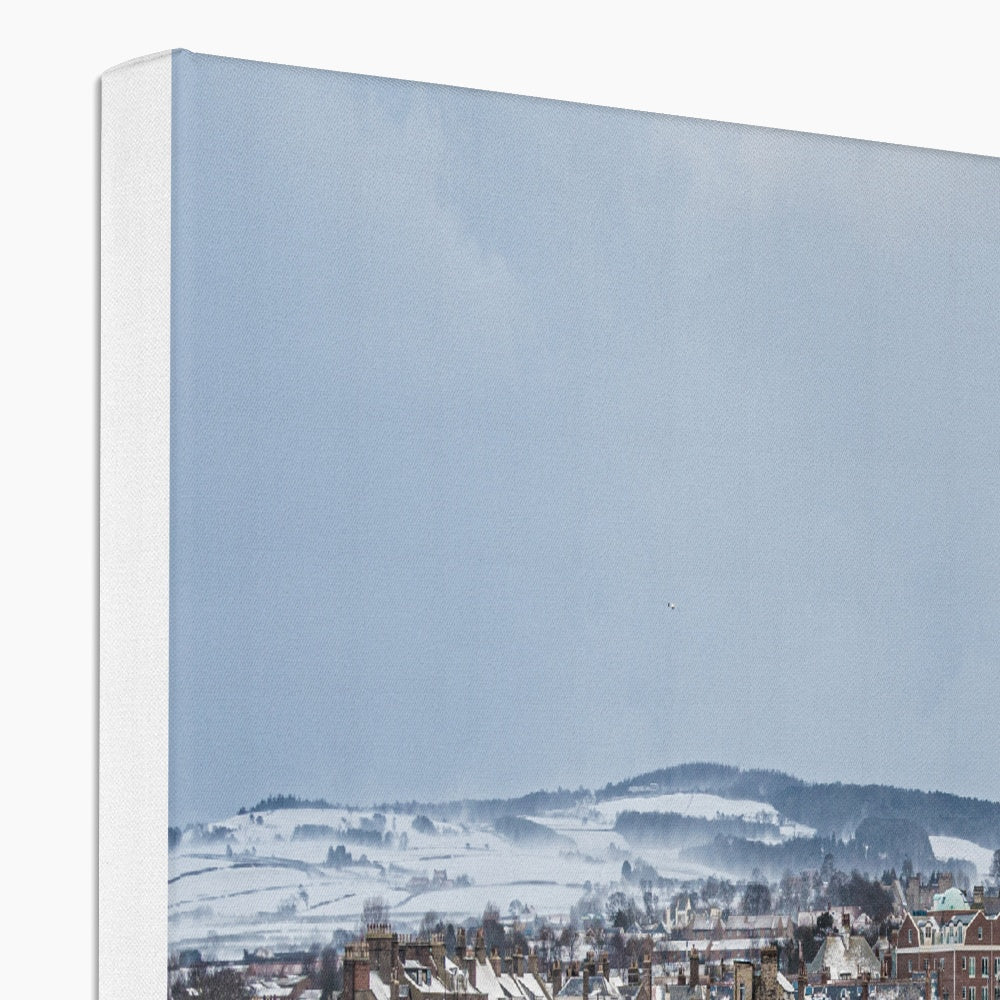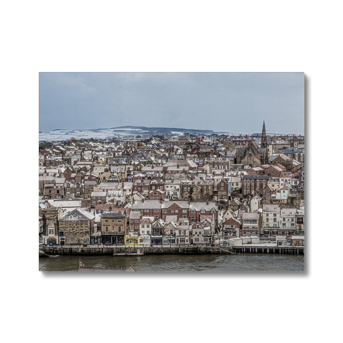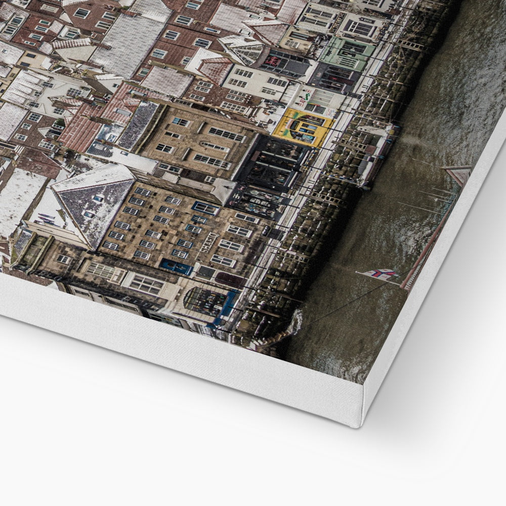 View of Whitby town centre in snow from St Mary's Church, Whitby, UK. Canvas