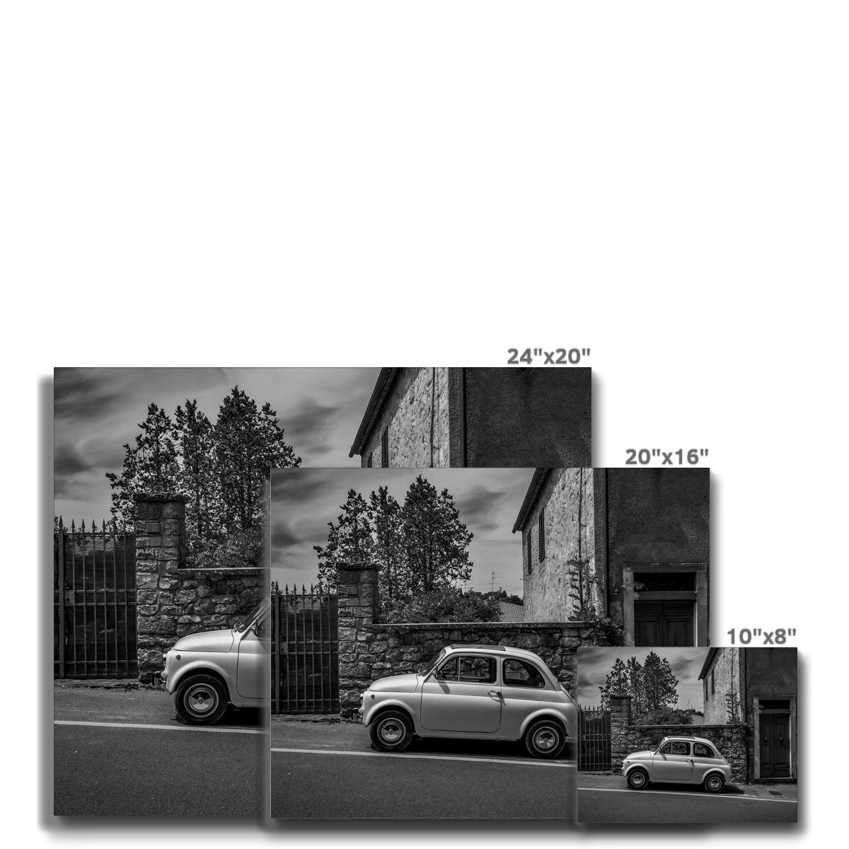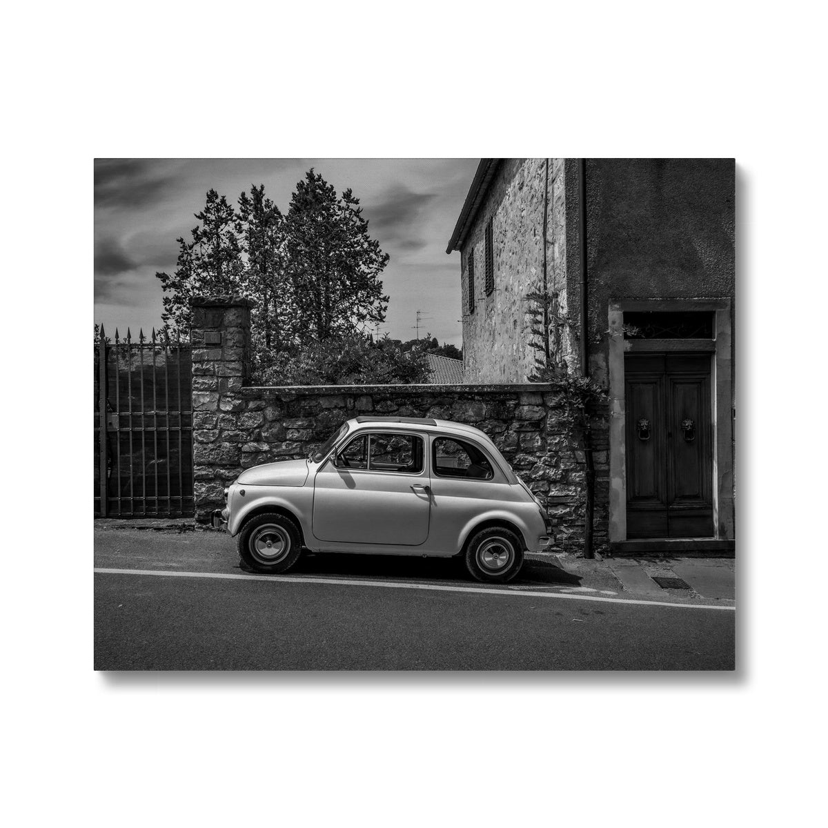 Vintage Fiat 500 car parked in Castellina in Chianti, Tuscany, Italy. Canvas
