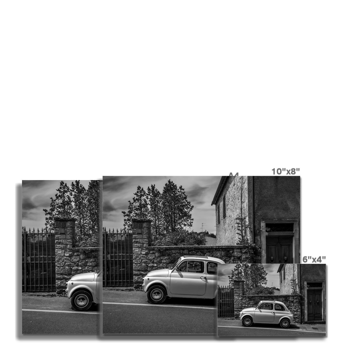 Vintage Fiat 500 car parked in Castellina in Chianti, Tuscany, Italy. Fine Art Print