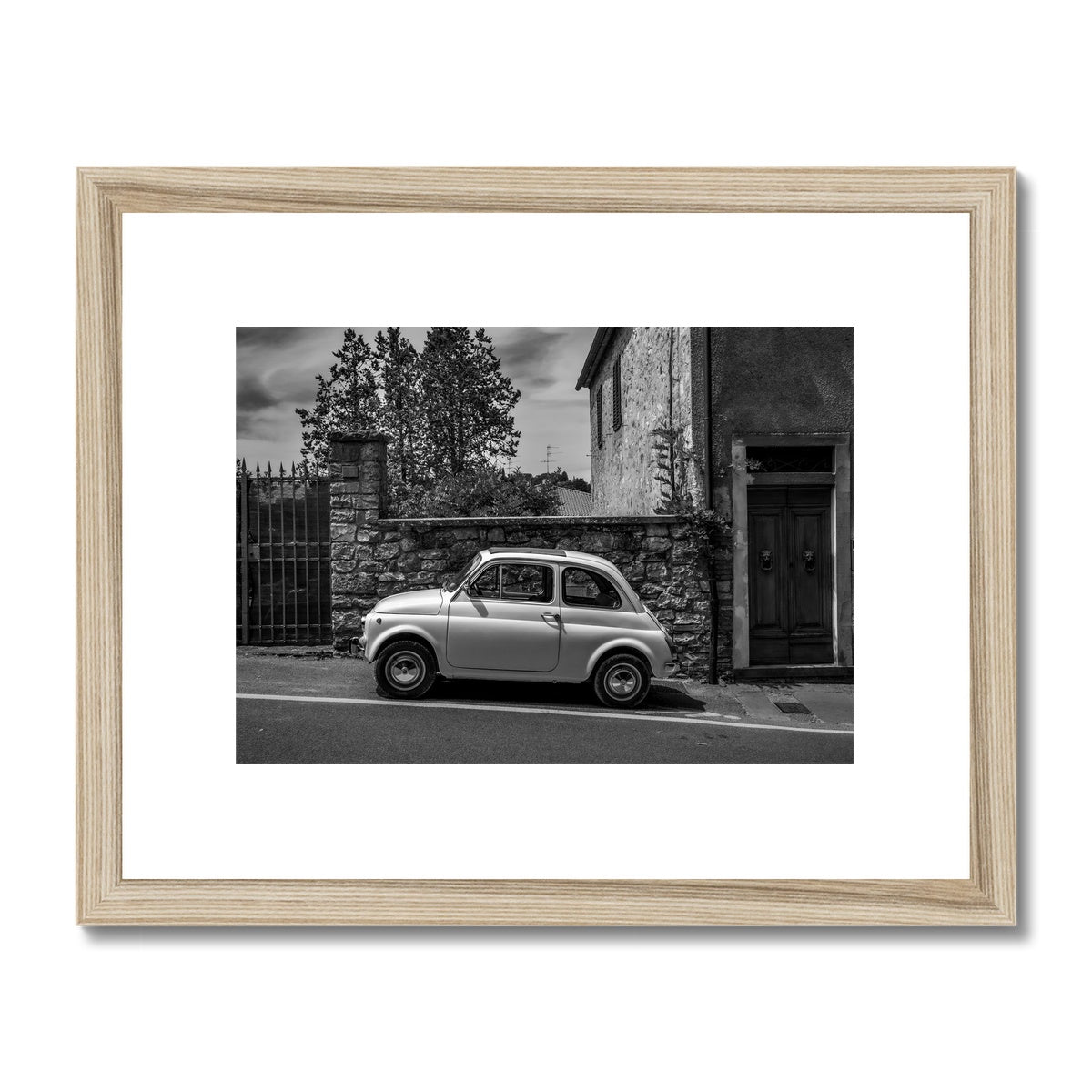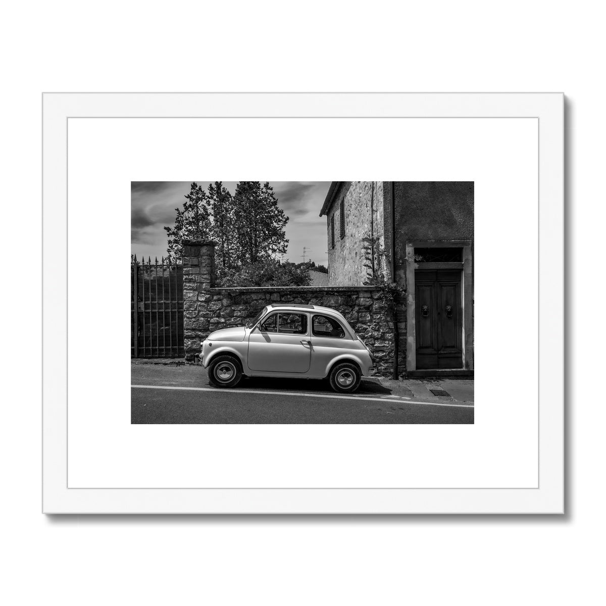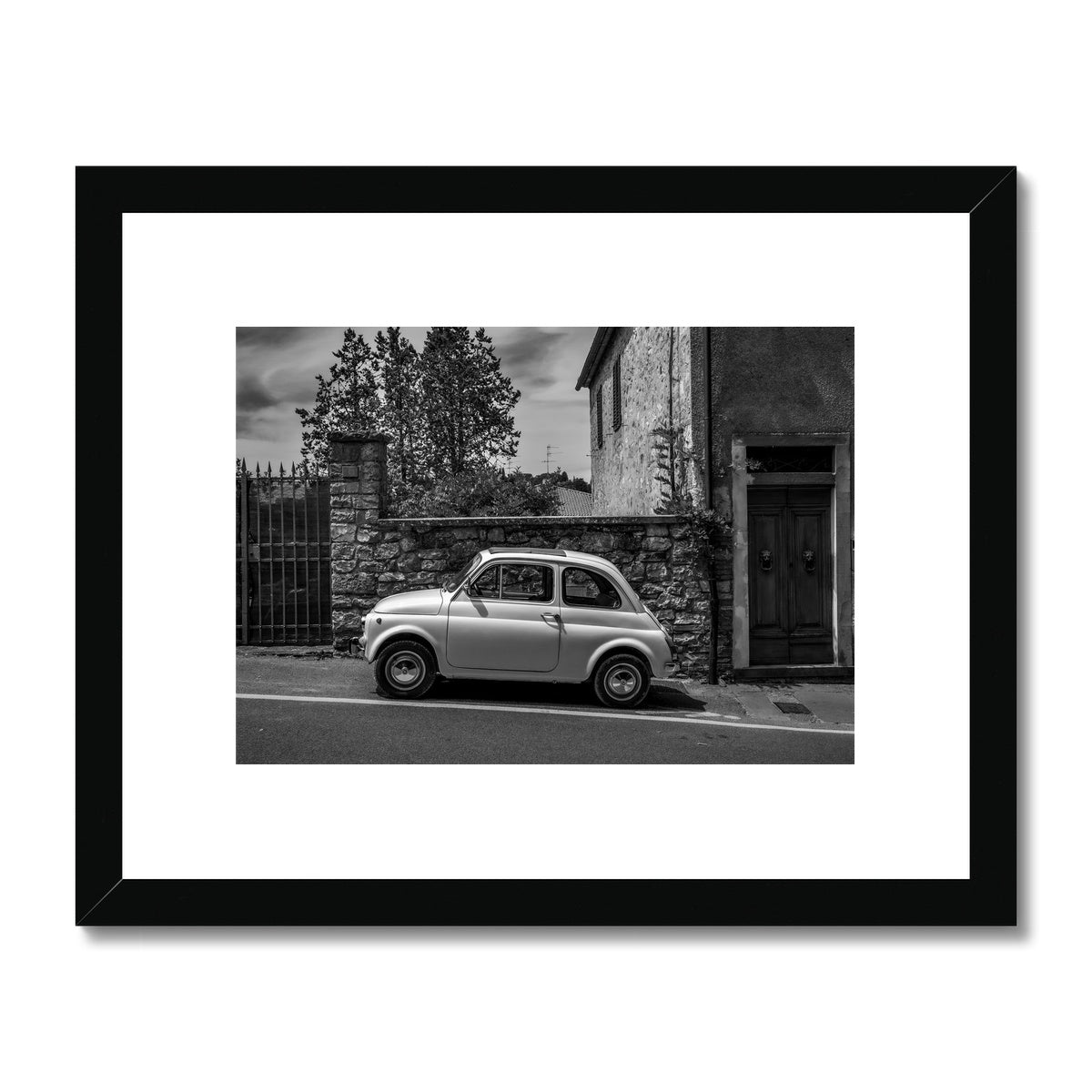 Vintage Fiat 500 car parked in Castellina in Chianti, Tuscany, Italy. Framed & Mounted Print