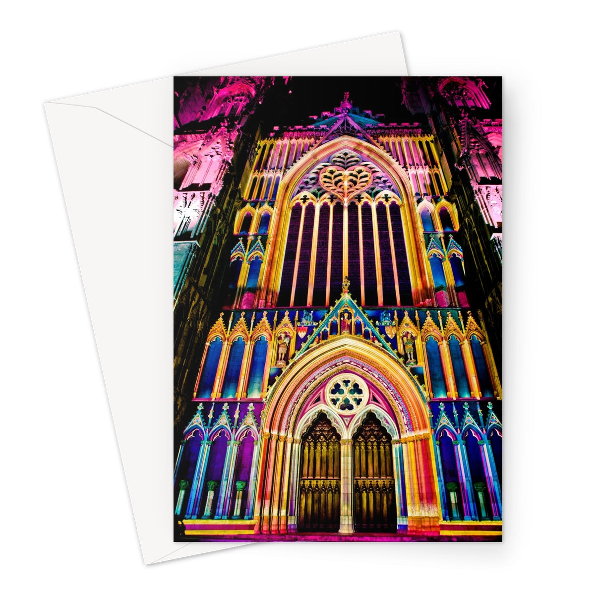 West front of York Minster, Illuminating York Festival. Greeting Card