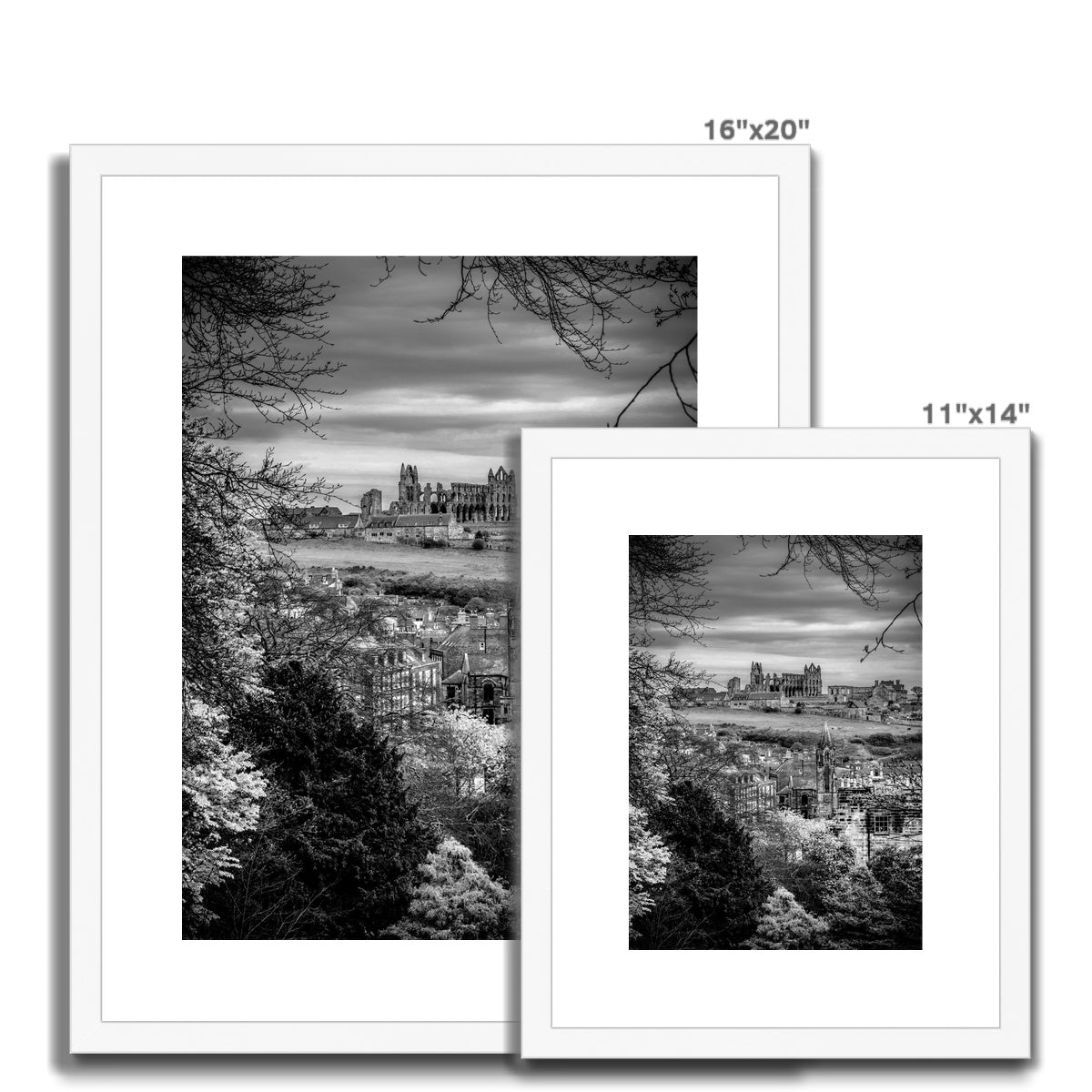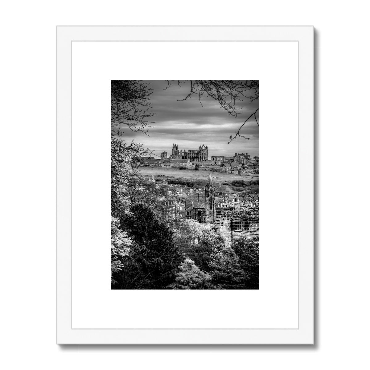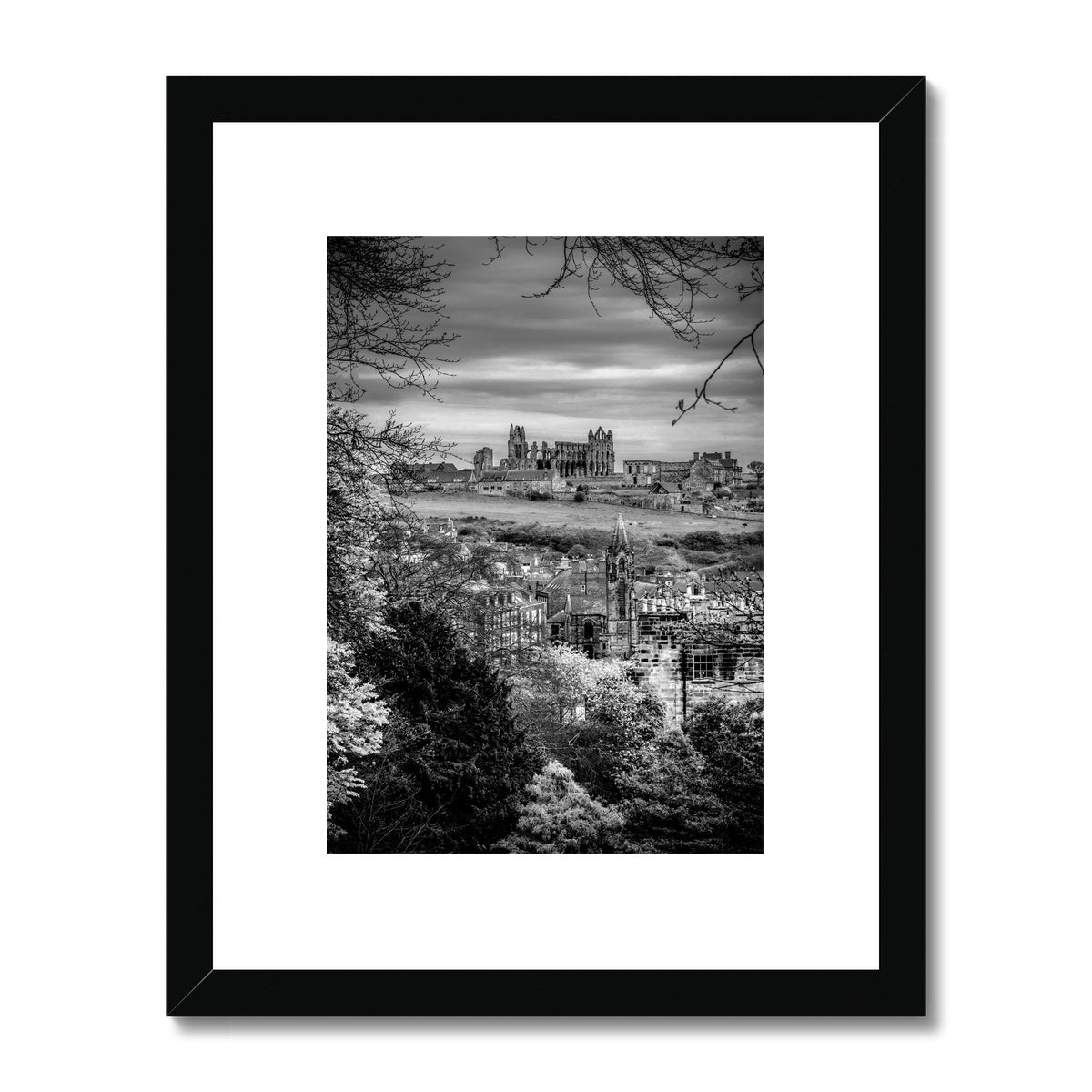Whitby Abbey viewed from Pannett Gardens, Whitby, UK. Framed & Mounted Print