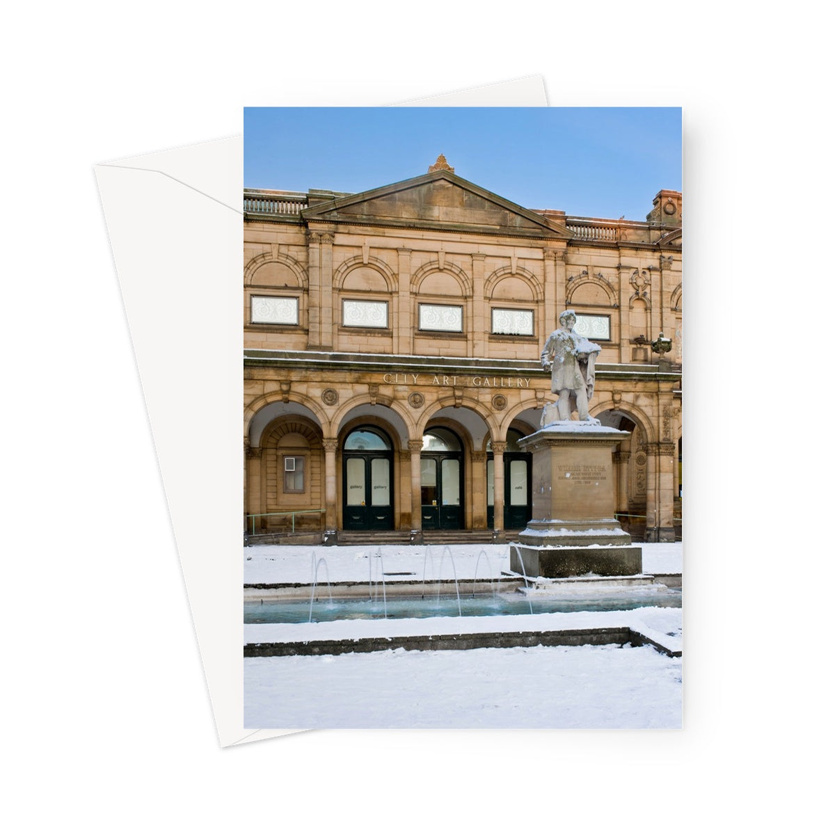 York Art Gallery with William Etty statue in front in the snow. York, North Yorkshire, UK Greeting Card