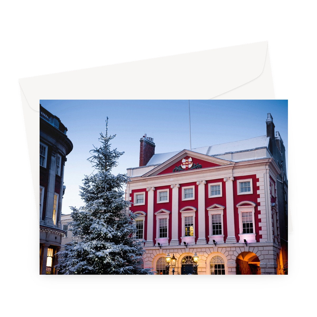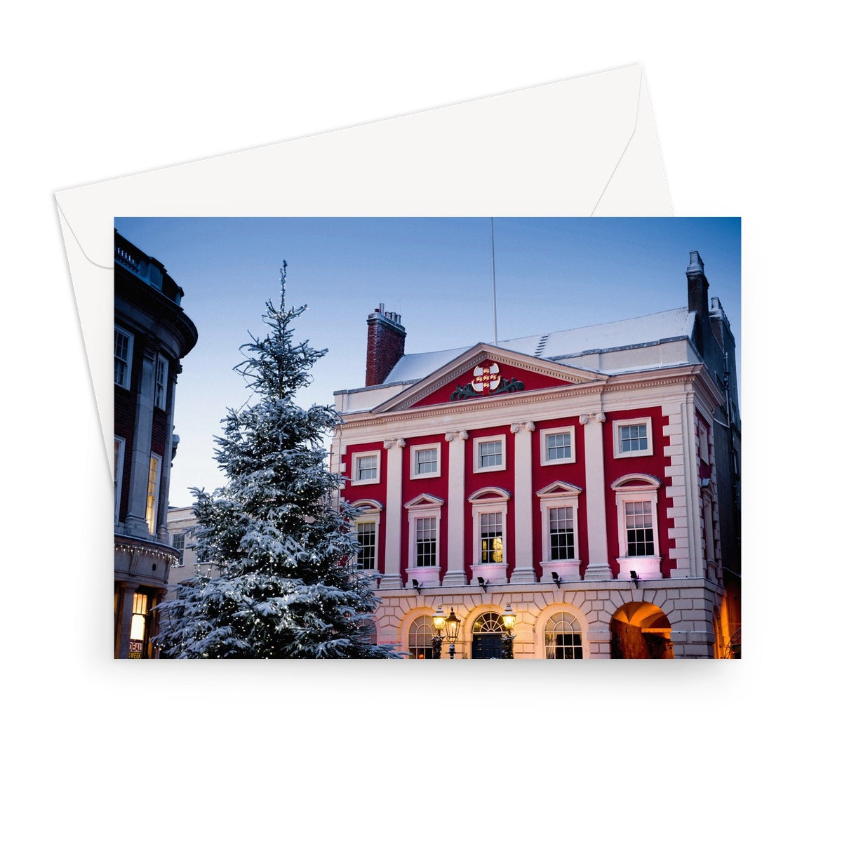 York Mansion House and Christmas tree in the snow, York, UK. Greeting Card
