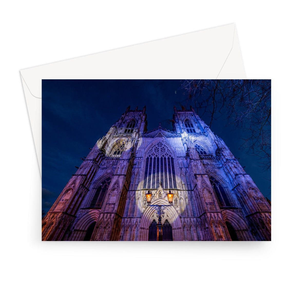 York Minster cathedral with Christmas illuminations, York, UK. Greeting Card