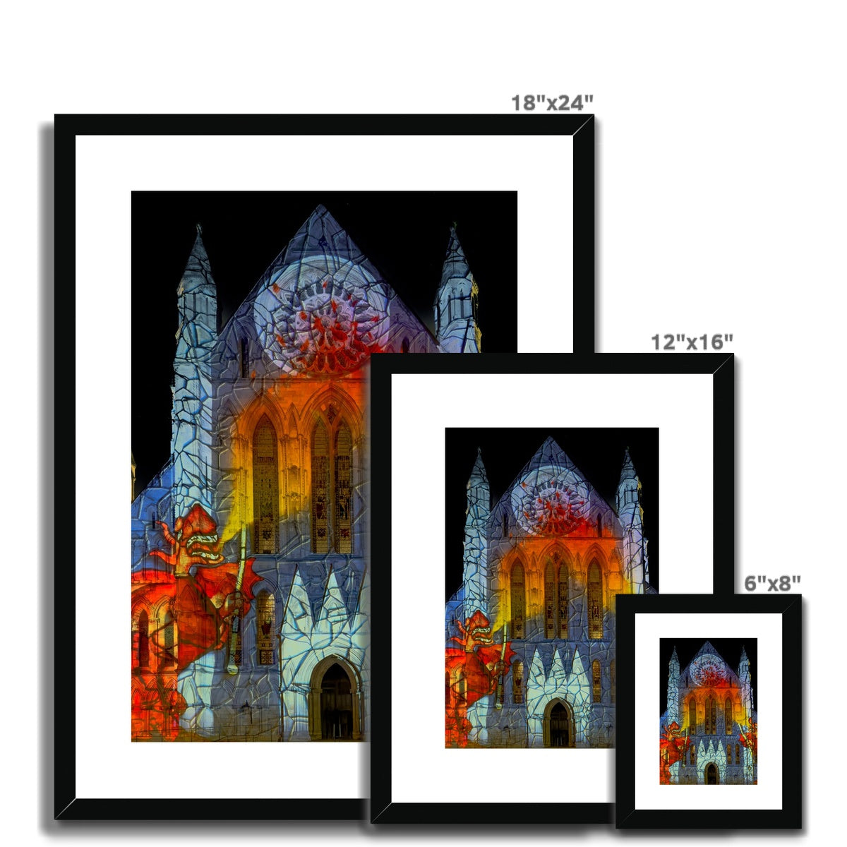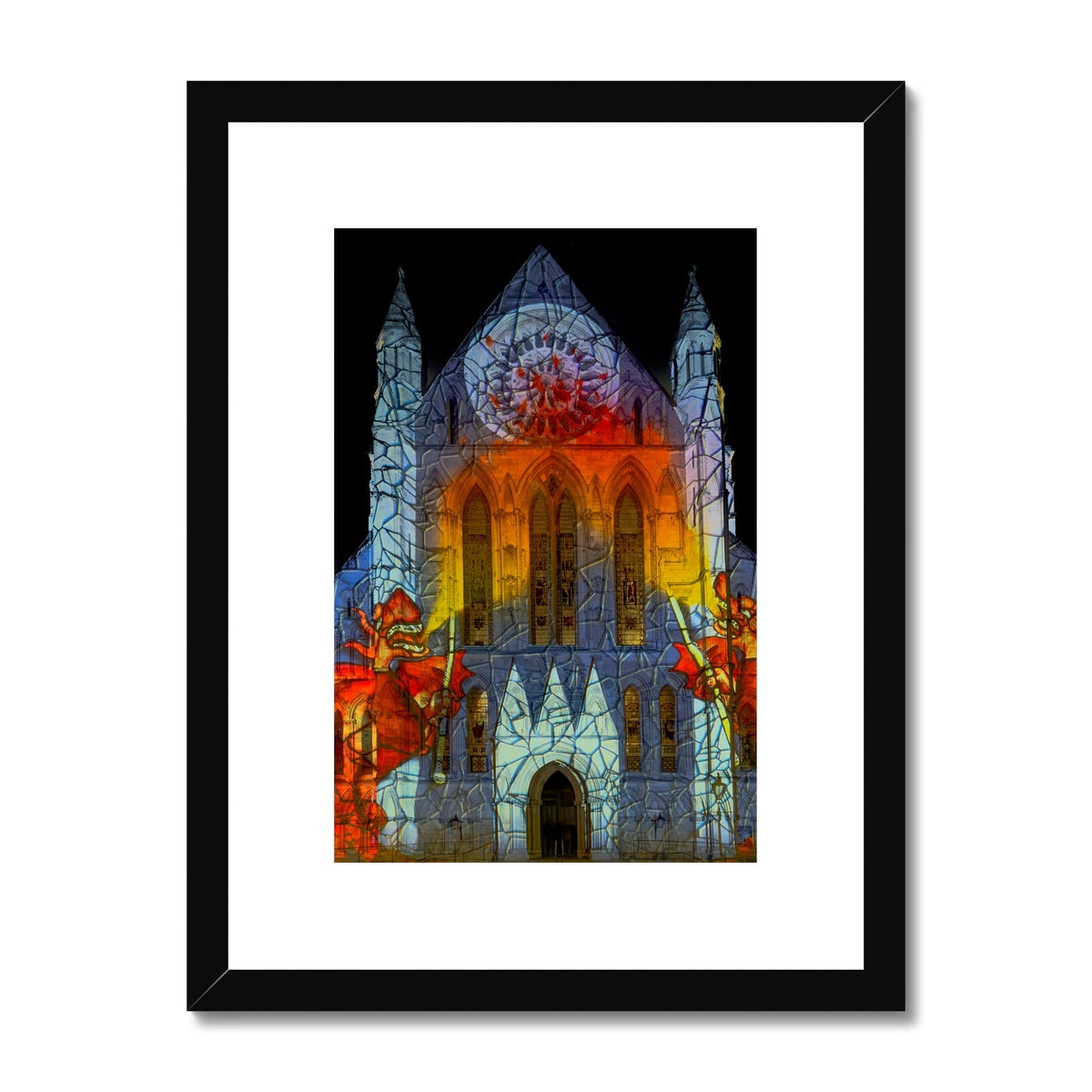 York Minster Light Show – Dragon Projection. York. UK Framed & Mounted Print