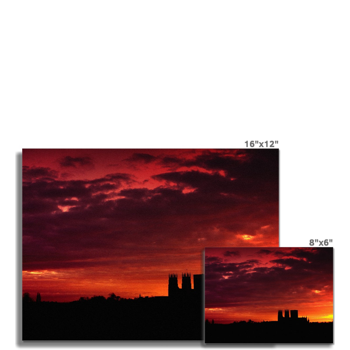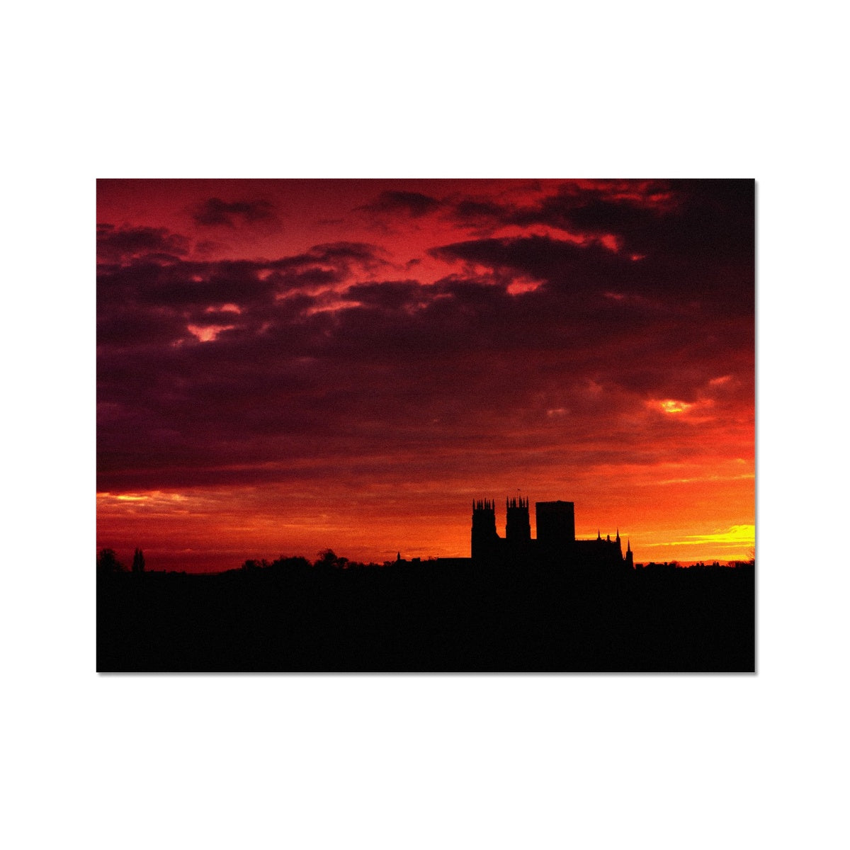 York Minster silhouetted against an orange sky at sunrise Fine Art Print