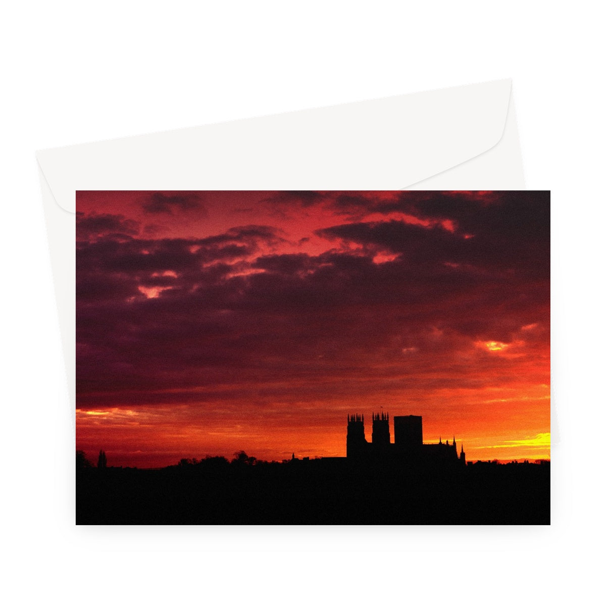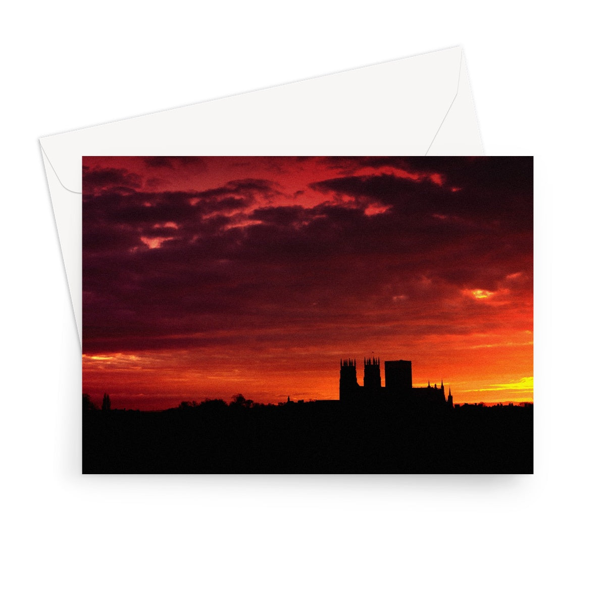 York Minster silhouetted against an orange sky at sunrise Greeting Card