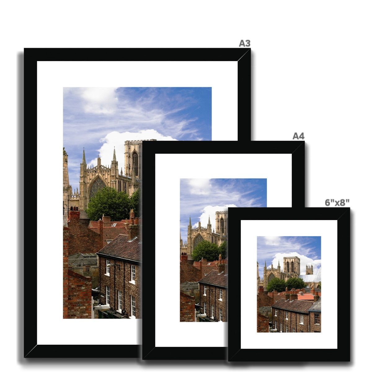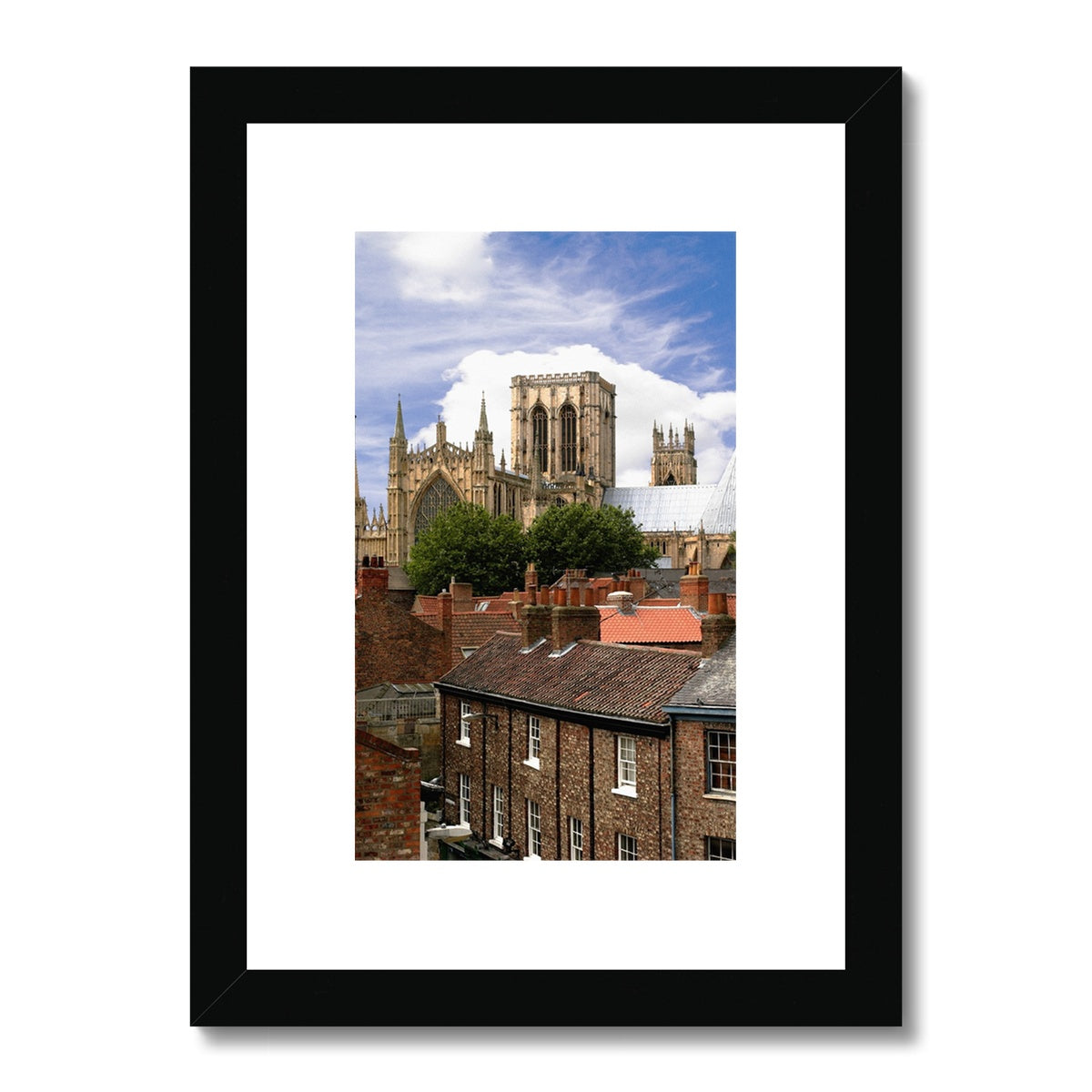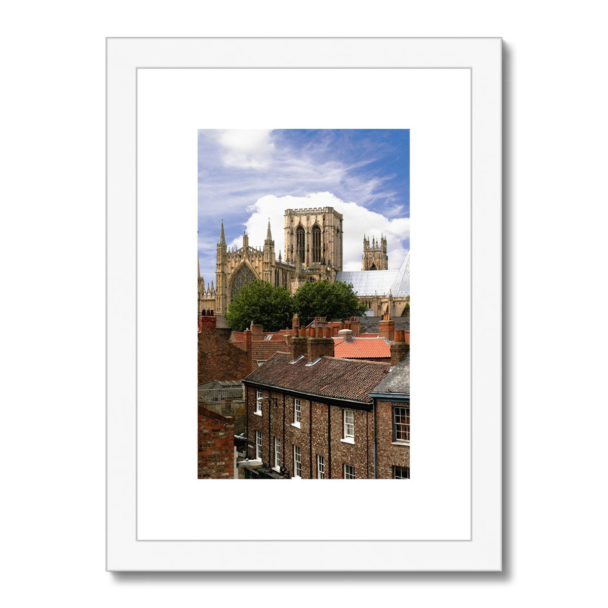 York Minster towering over York's historic rooftops. York. North Yorkshire. UK Framed & Mounted Print