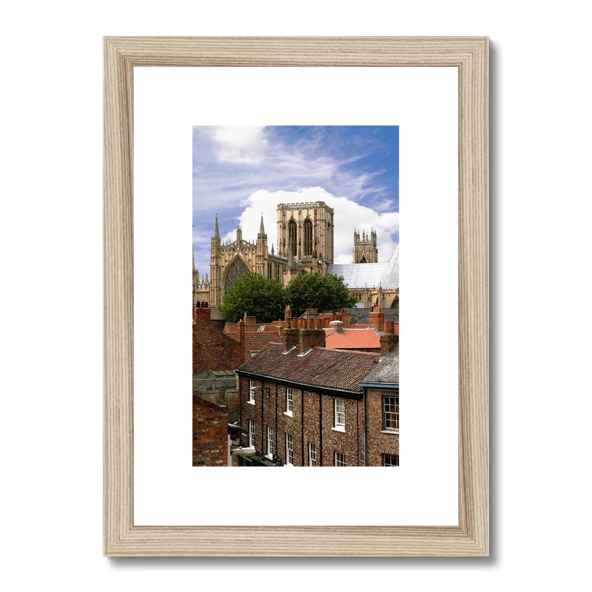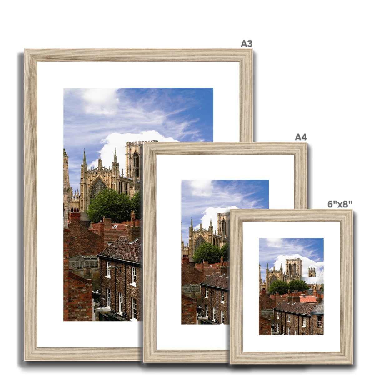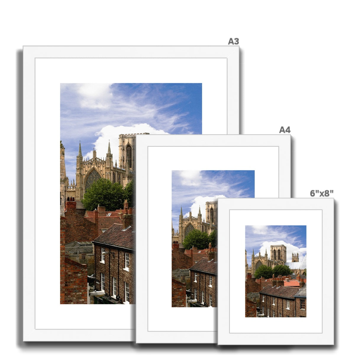 York Minster towering over York's historic rooftops. York. North Yorkshire. UK Framed & Mounted Print