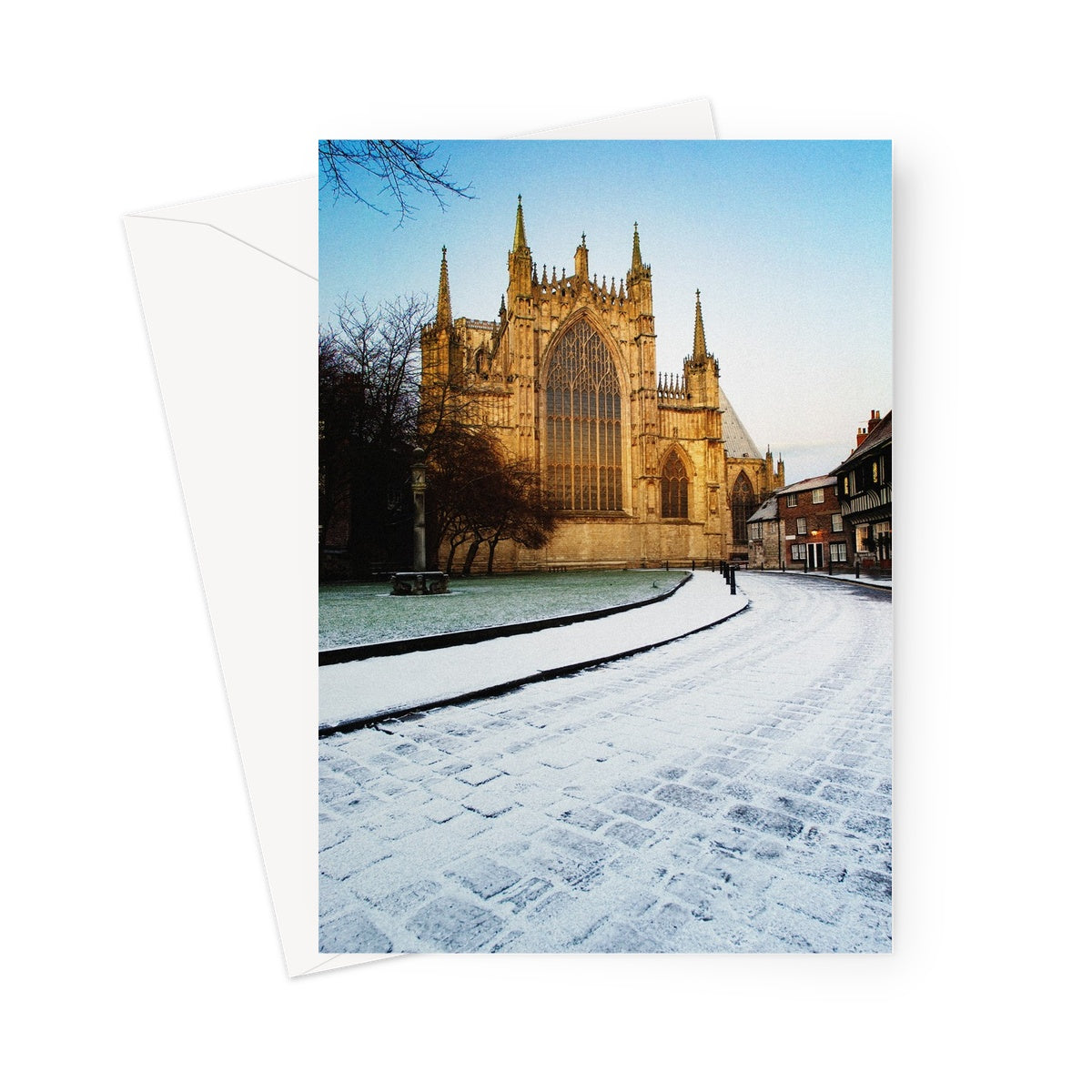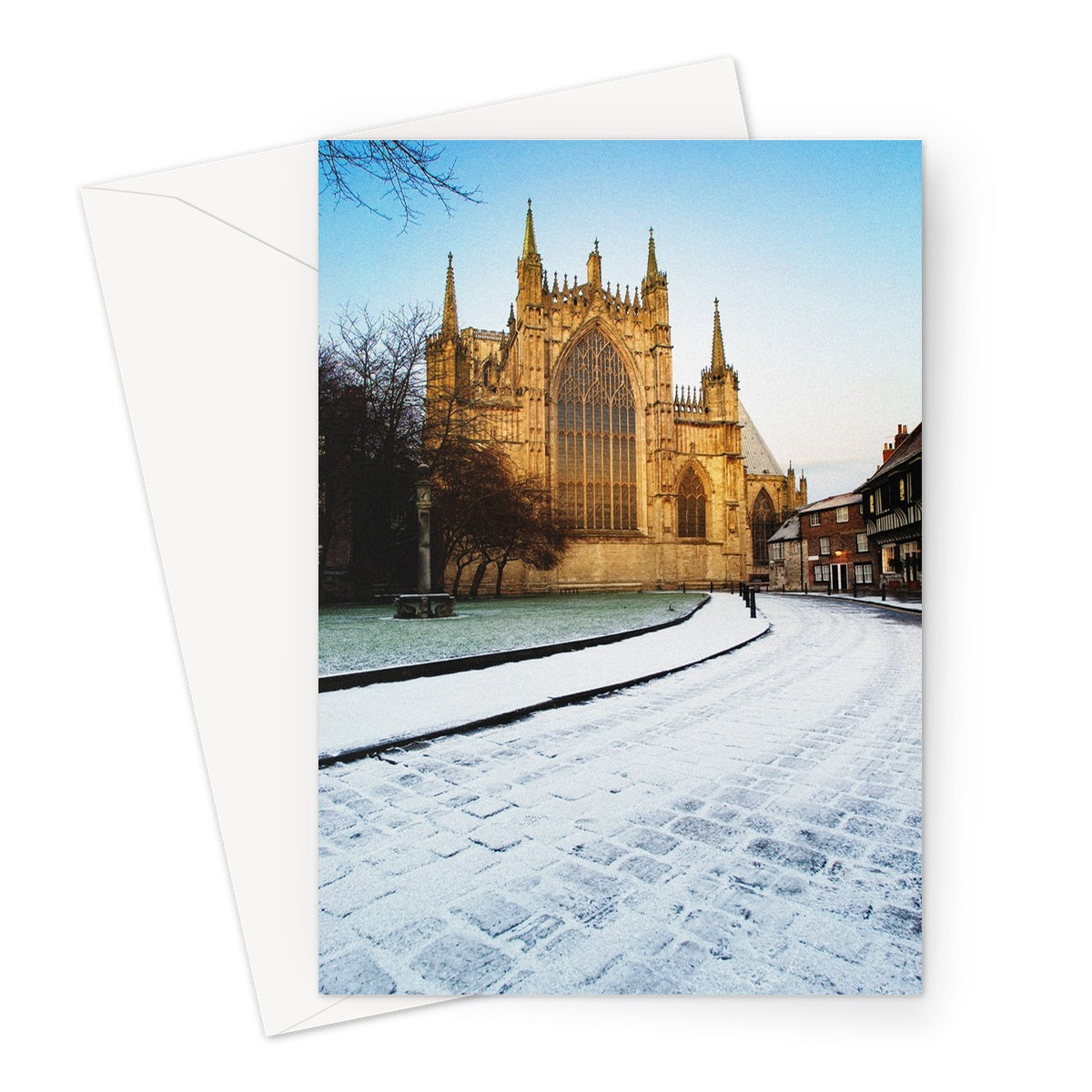 York Minster with College Green and College Street in the snow, York, North Yorkshire, UK Greeting Card