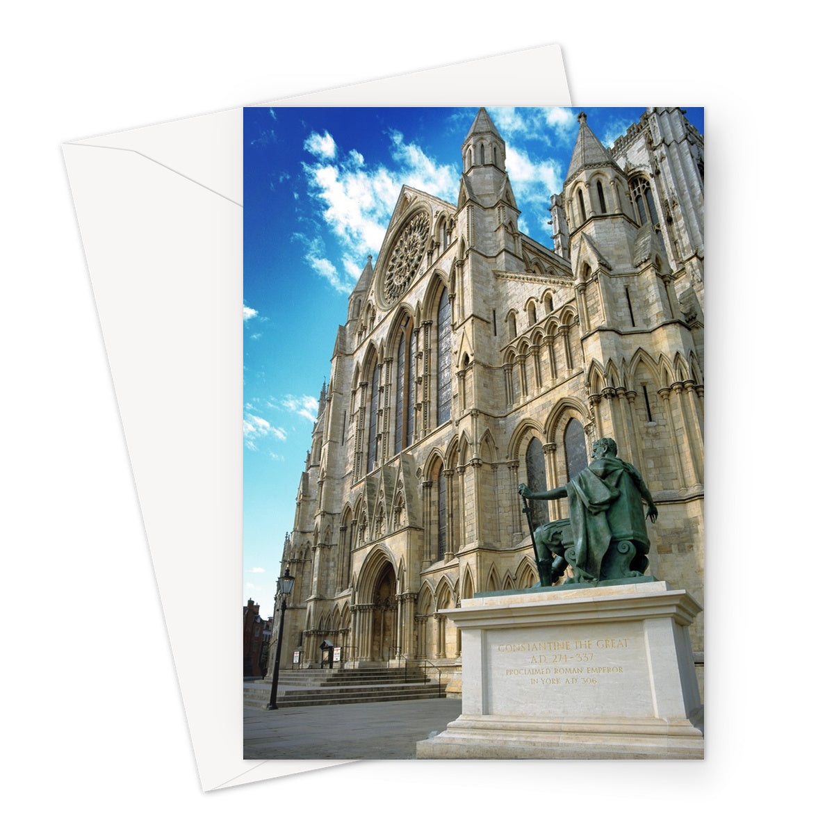 York Minster's South façade with the statue of Constantine in the foreground. North Yorkshire, UK Greeting Card